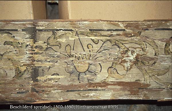 Spreidsel werd aangebracht tussen de kinderbinten om de bovenliggende vloerdelen af te dekken. In het pand Hinthamerstraat 89/91 is het rijk beschilderd. De beschildering bestaat uit meerkleurige bloemmotieven en stamt uit de periode 1500-1550.