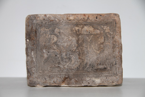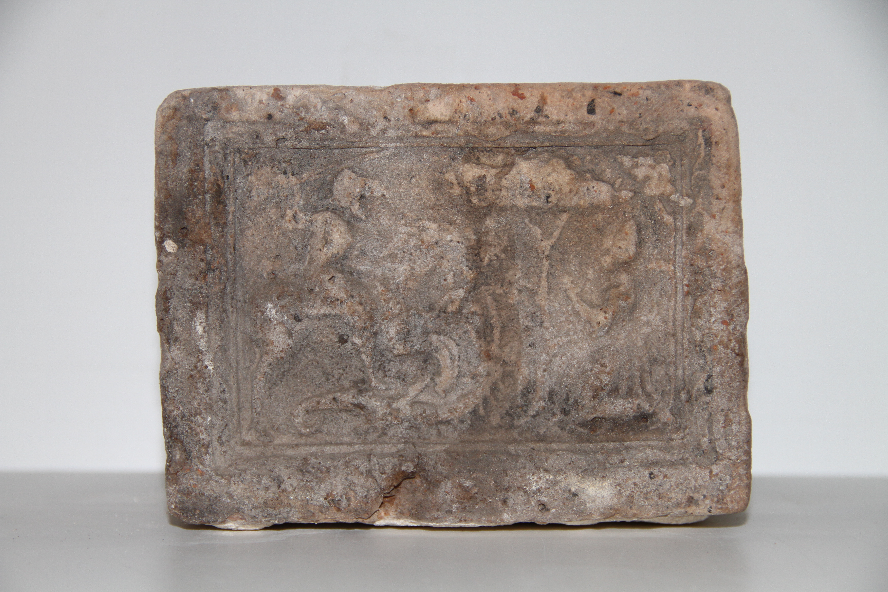 Deze haardsteen komt uit het pand Postelstraat 54-56. Te zien is ridder Sint Joris met getrokken zwaard, die een draak bevecht. Aan de rechterkant een jonkvrouw, naast een boom.