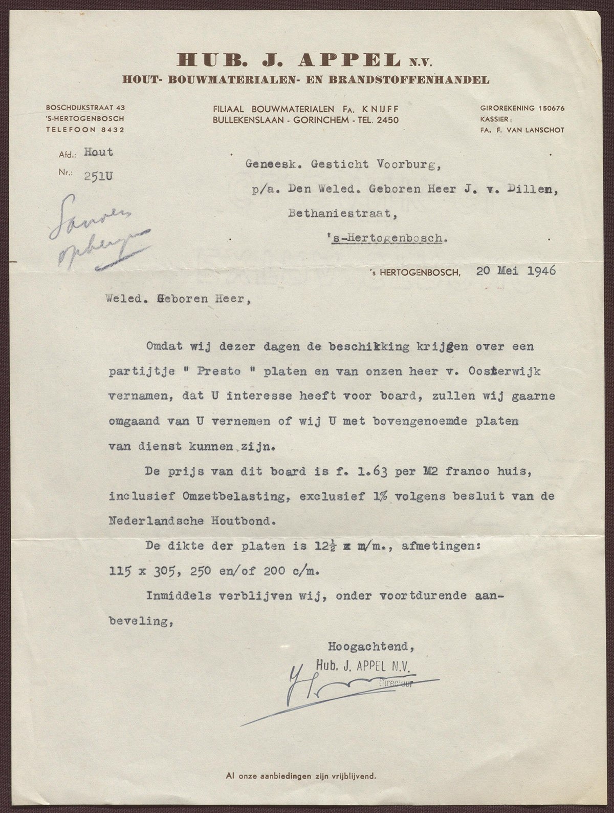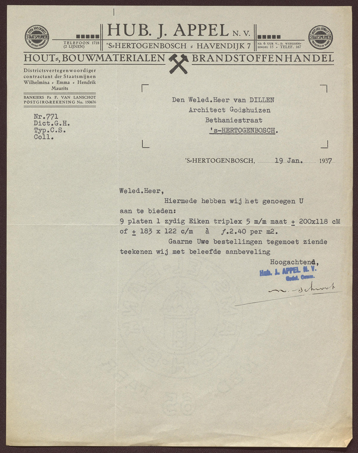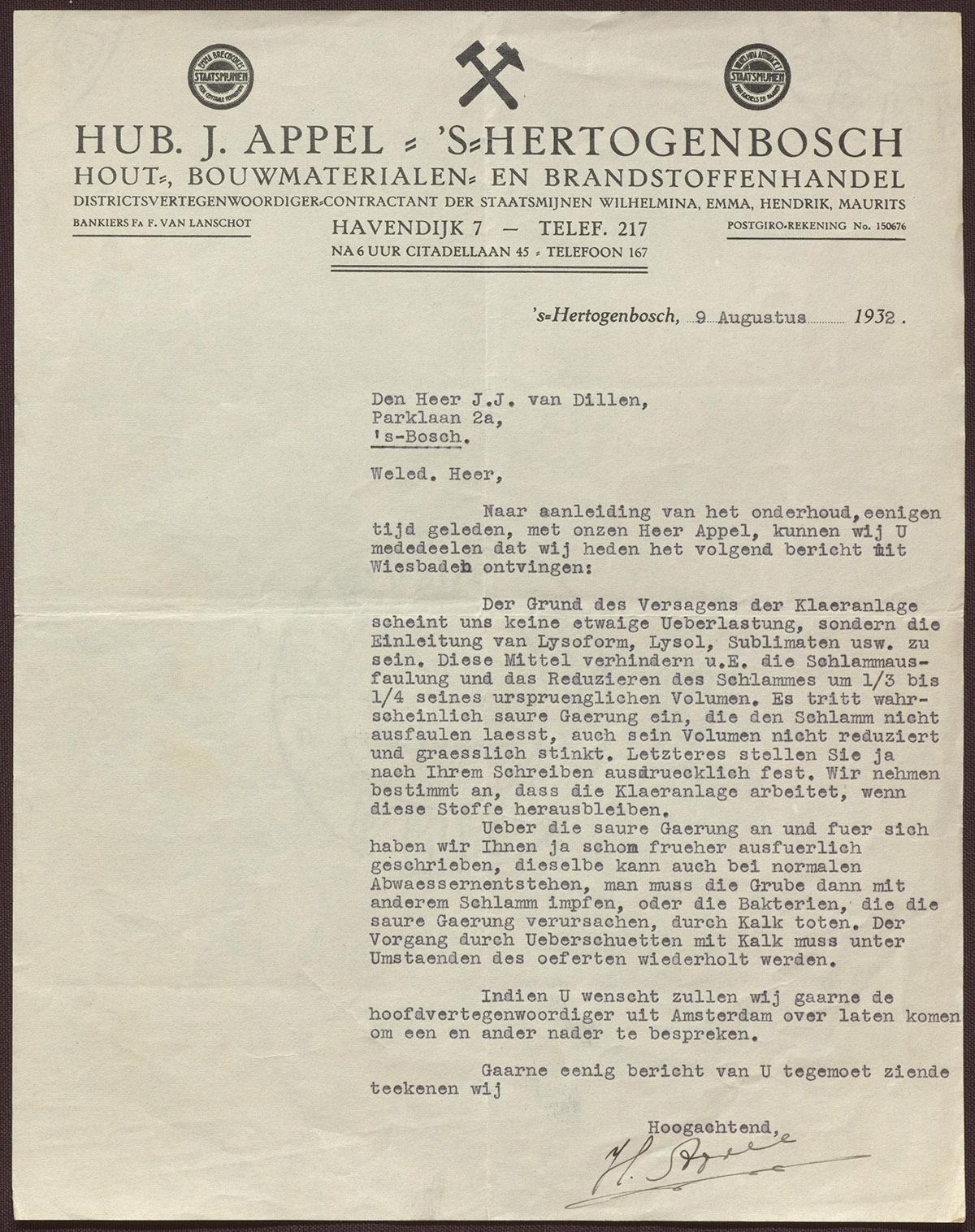 Hub. J. Appel 's-Hertogenbosch : Hout-, Bouwmaterialen- en Brandstoffenhandel