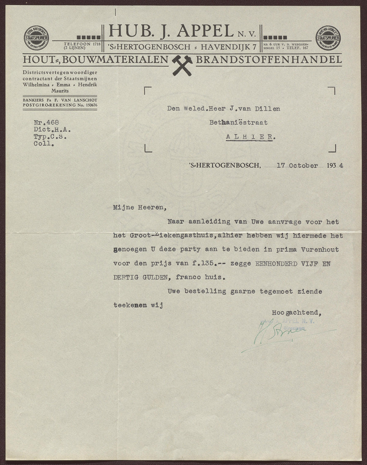 Hub. J. Appel N.V. : Hout-, Bouwmaterialen : Brandstoffenhandel