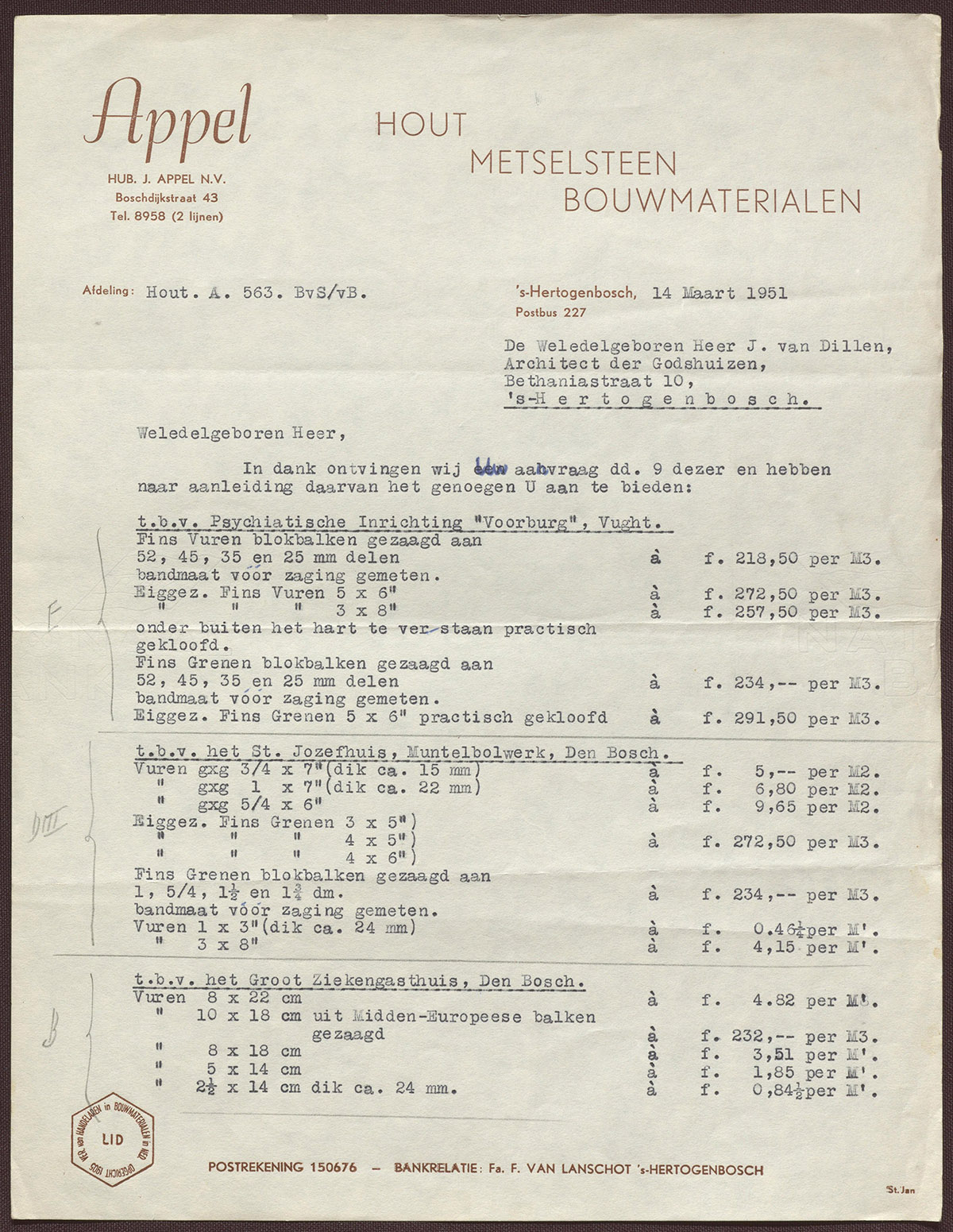 Hub. J. Appel N.V. : Afdeeling: hout