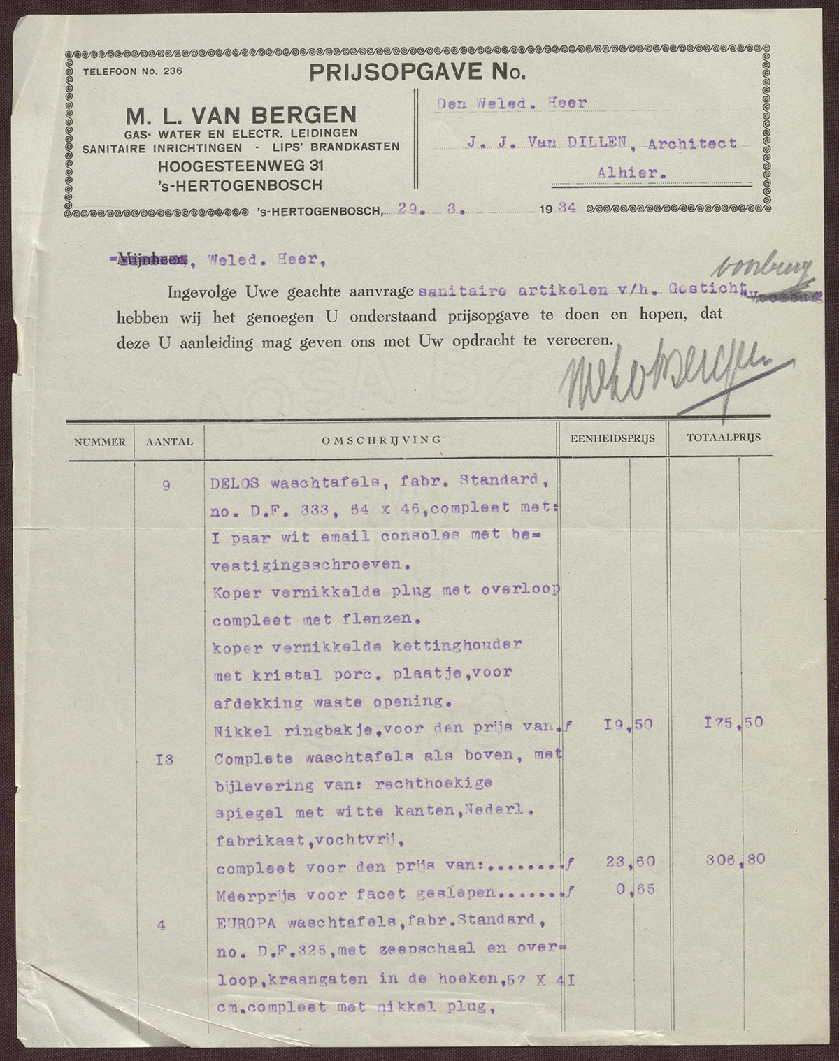 Gas- Water en Electr. leidingen - Sanitaire inrichtingen - Lips brandkasten
