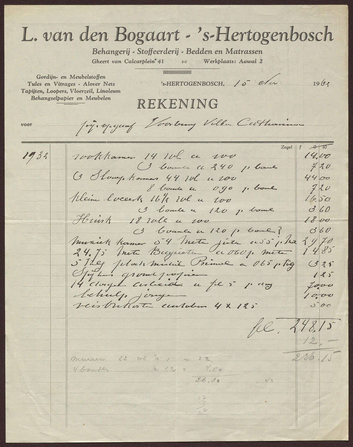 L. van de Bogaart - 's-Hertogenbosch : Behangerij - Stoffeerderij - Bedden en Matrassen