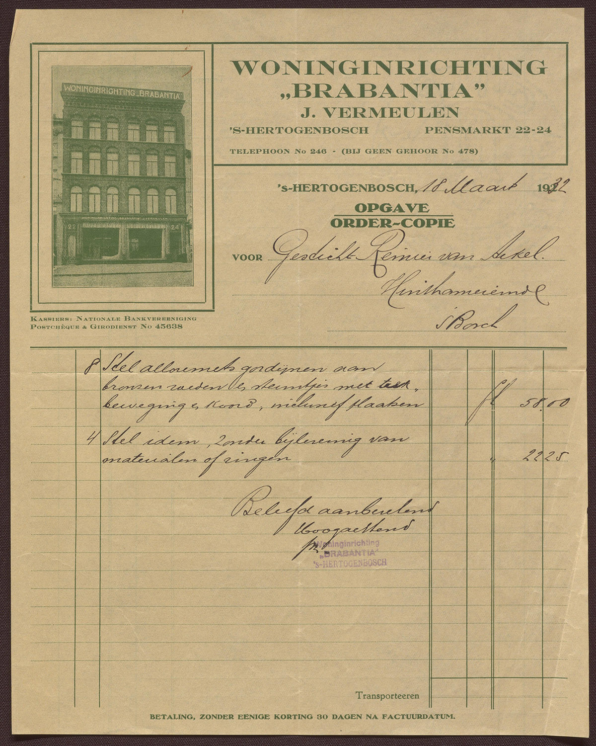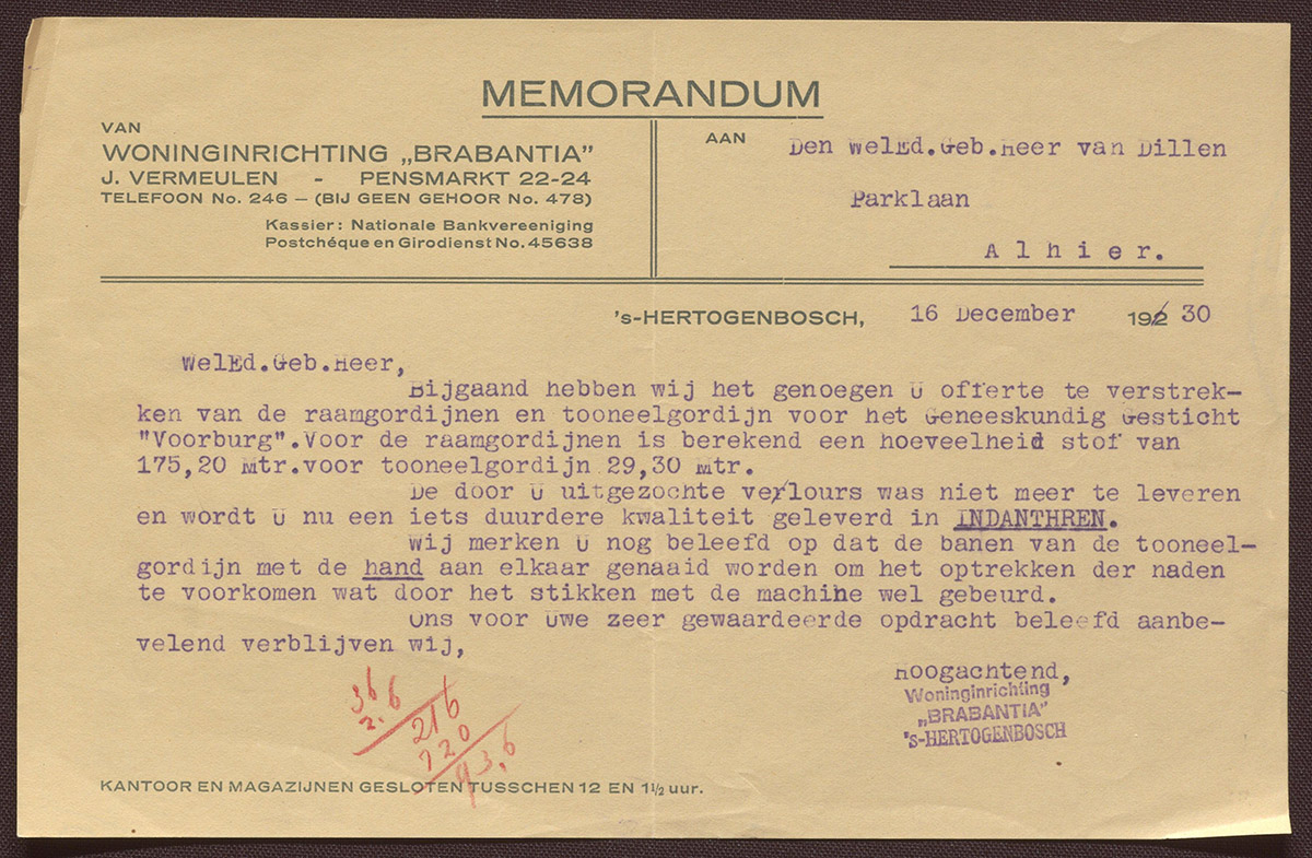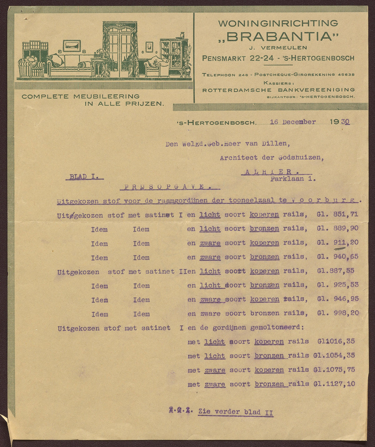 Memorandum van Woninginrichting 'Brabantia' J. Vermeulen