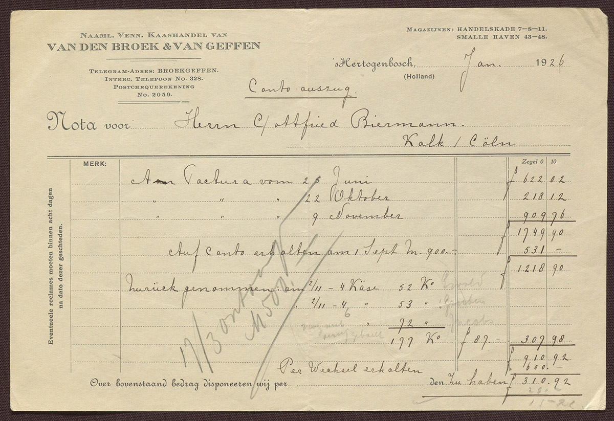 Naaml. Venn. Kaashandel van Van den Broek & Van Geffen