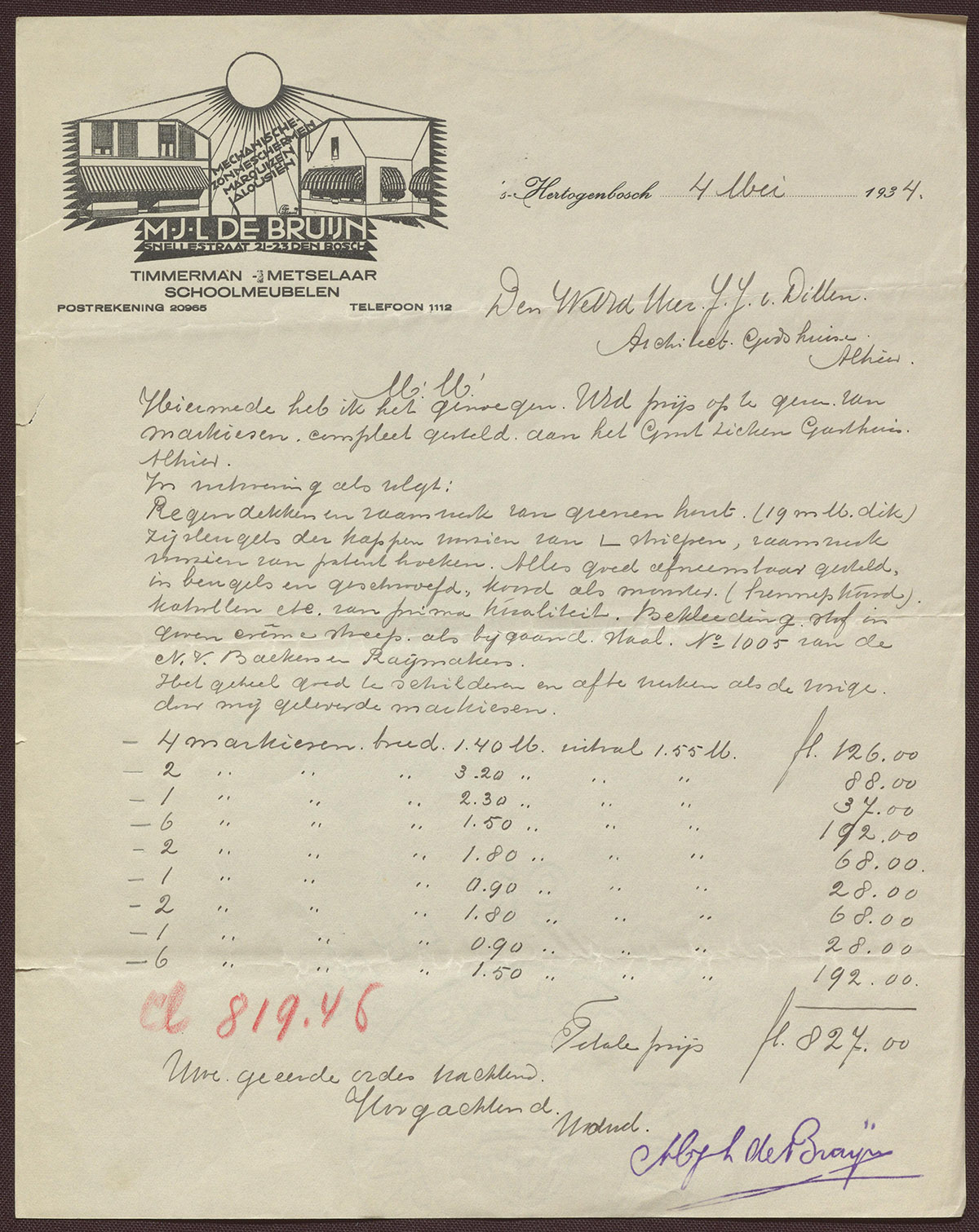 M.J.L. de Bruijn : Timmerman - Metselaar - Schoolmeubelen