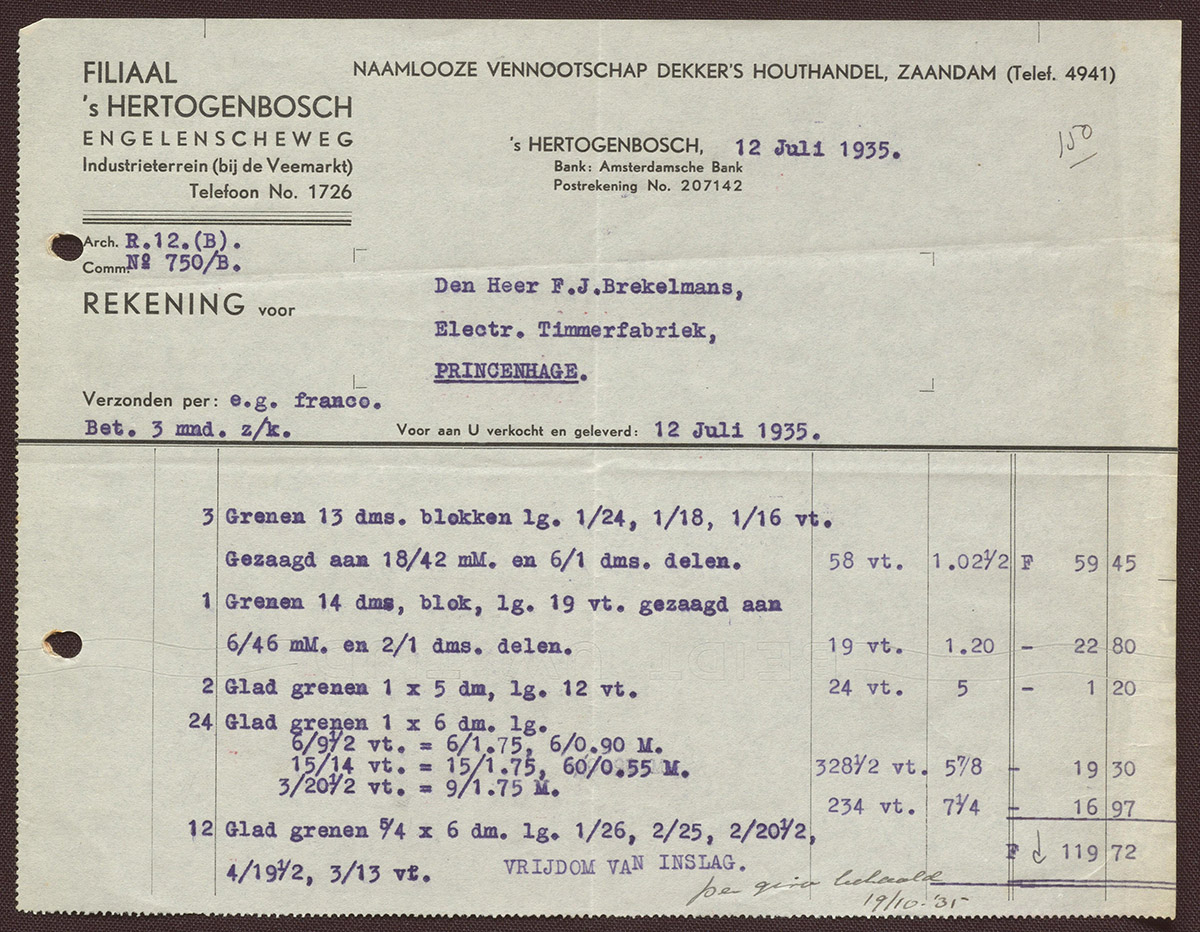 Naamloze Vennootschap Dekker's Houthandel, Zaandam : Filiaal 's-Hertogenbosch