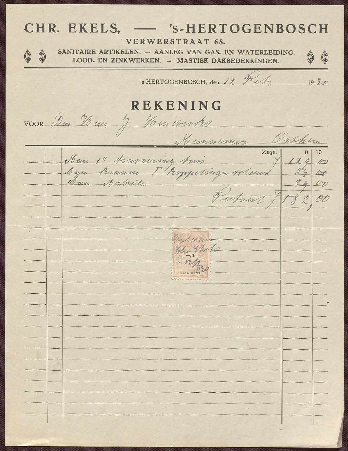 Sanitaire artikelen - Aanleg van gas- en waterleiding - Lood- en zinkwerken - Mastiek dakbedekkingen