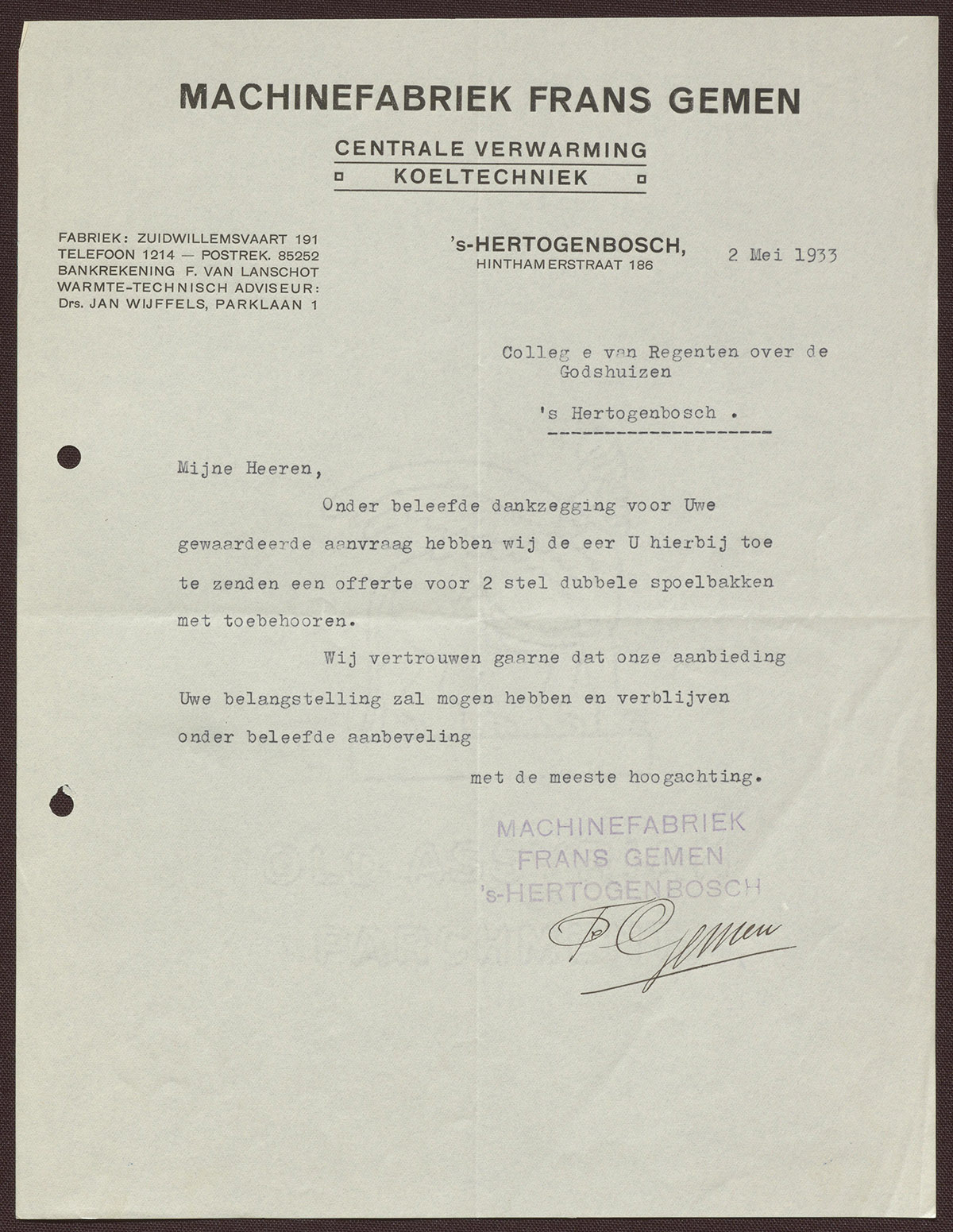 Machinefabriek Frans Gemen : Centrale verwarming - koeltechniek