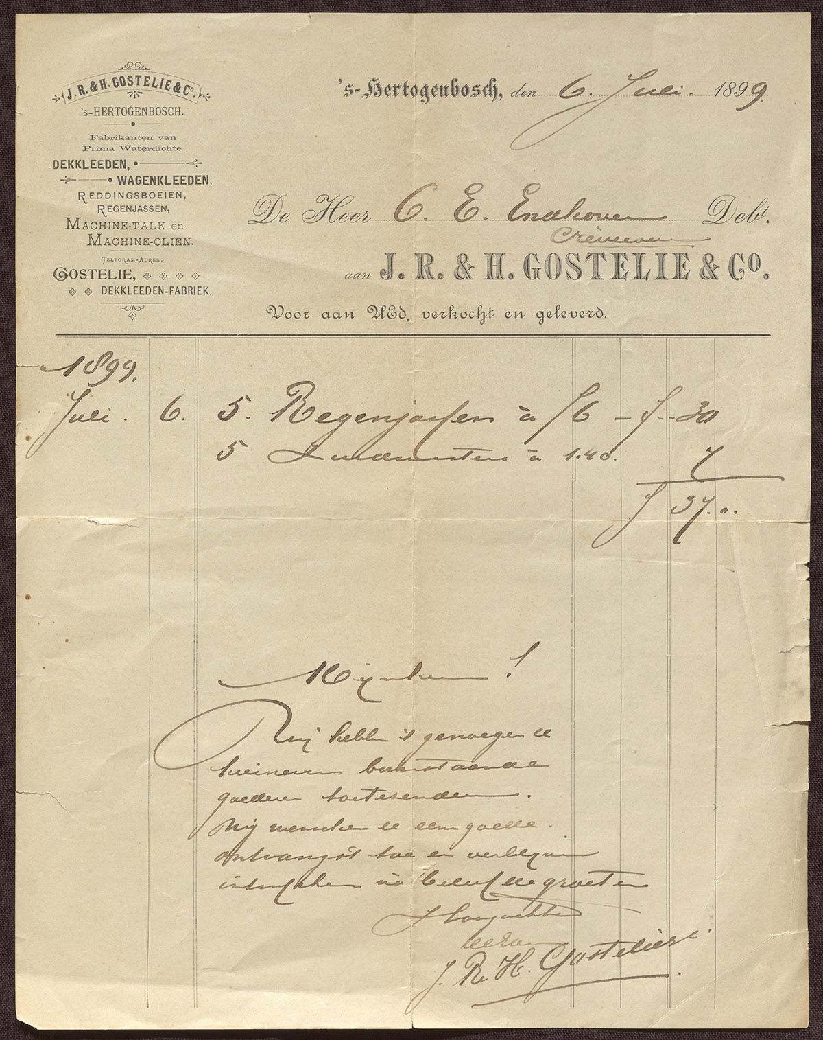 J.R. & H. Gostelie & Co. : Dekkleeden, Wagenkleeden, Reddingsboeien, Regenjassen, etc.