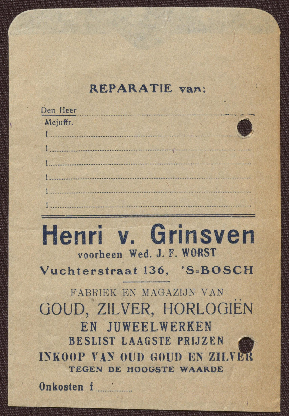 Henri v. Grinsven voorheen wed. J.F. Worst : Goud, zilver, Horlogiën en Juweelwerken