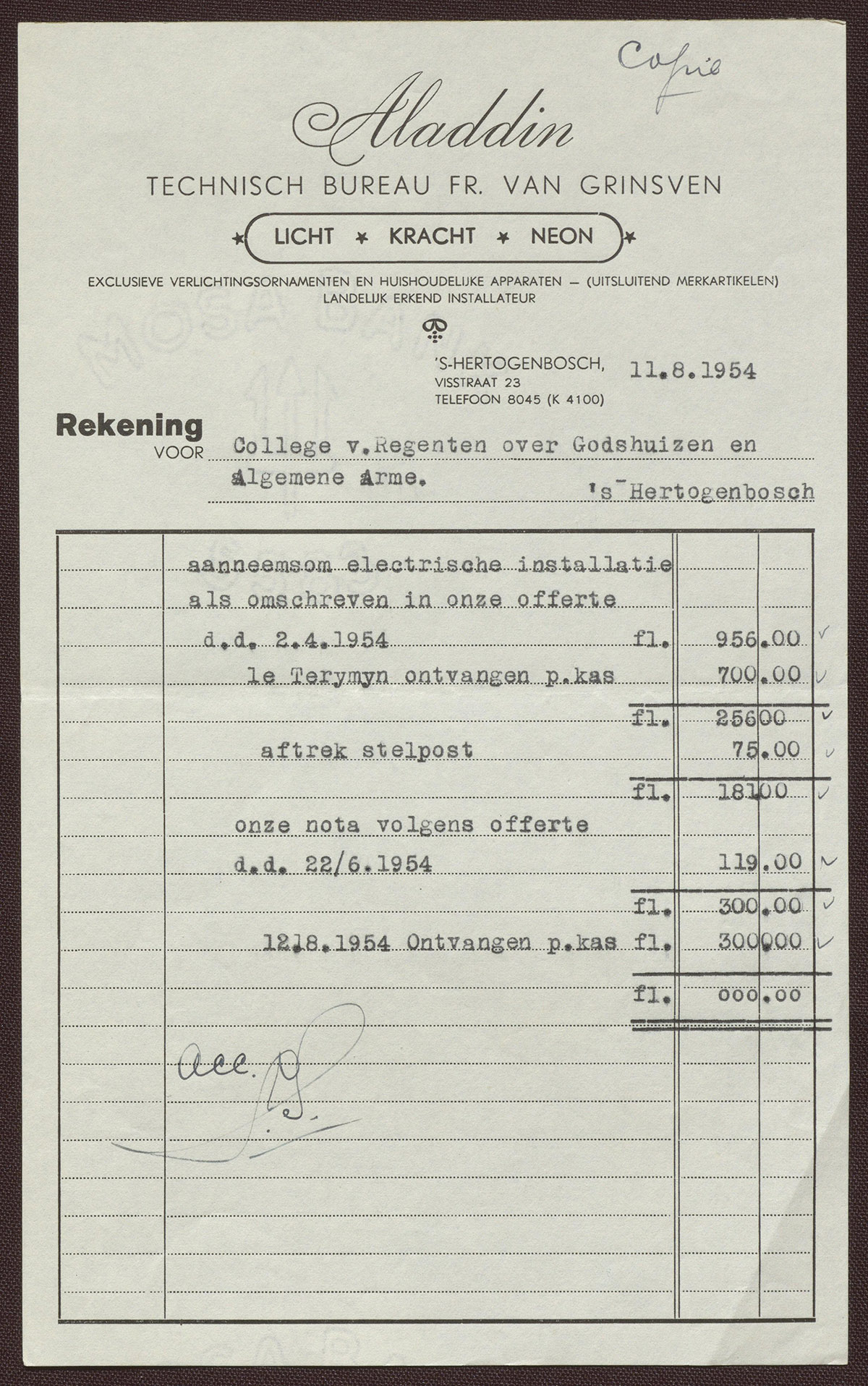 Aladdin : Technisch Bureau Fr. van Grinsven : Licht - Kracht - Neon