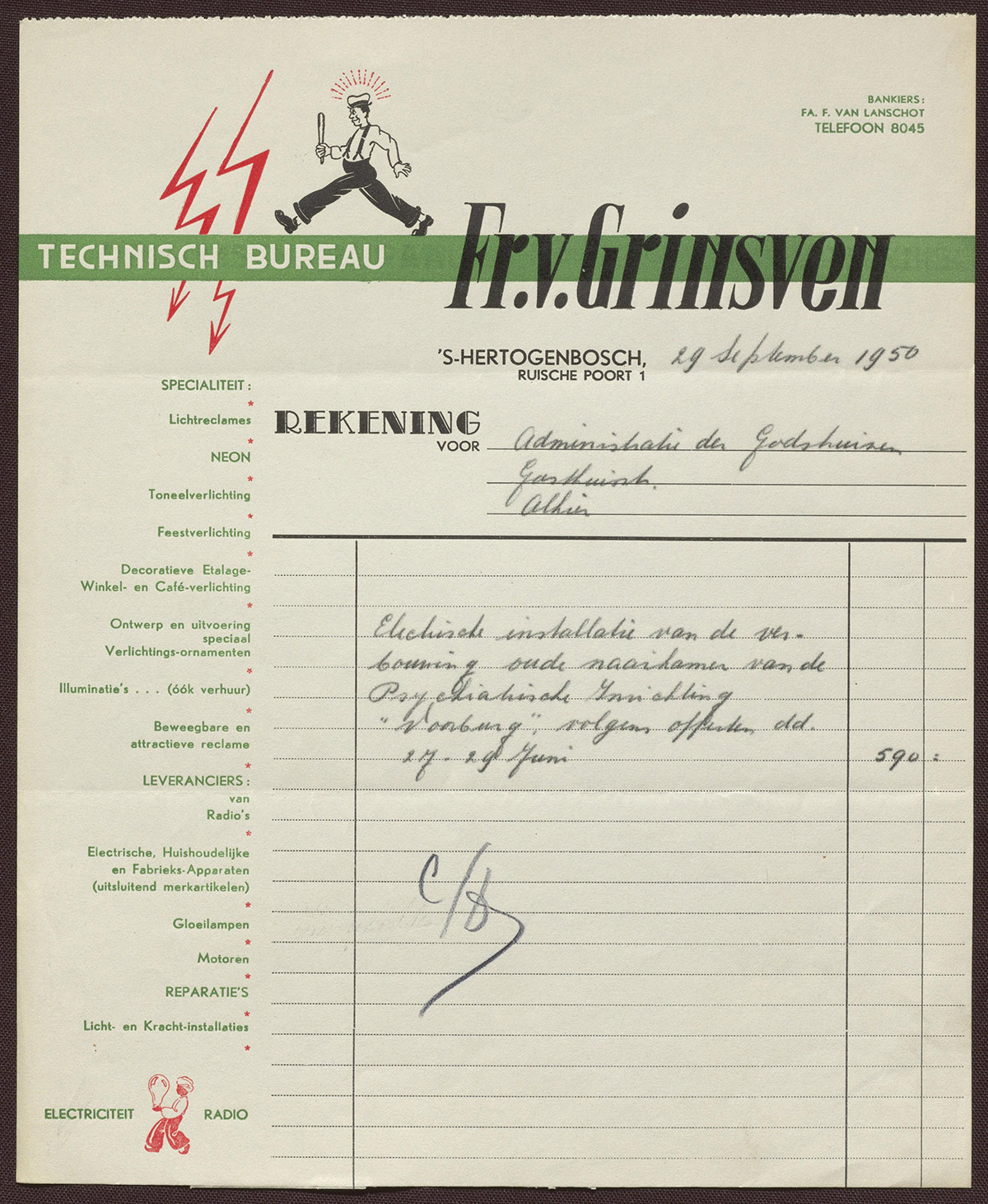 Technisch Bureau Fr. v. Grinsven : Lichtreclames, toneelverlichting, etc.