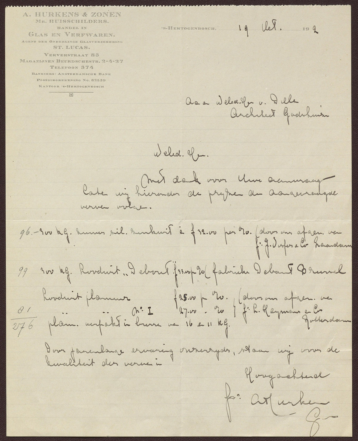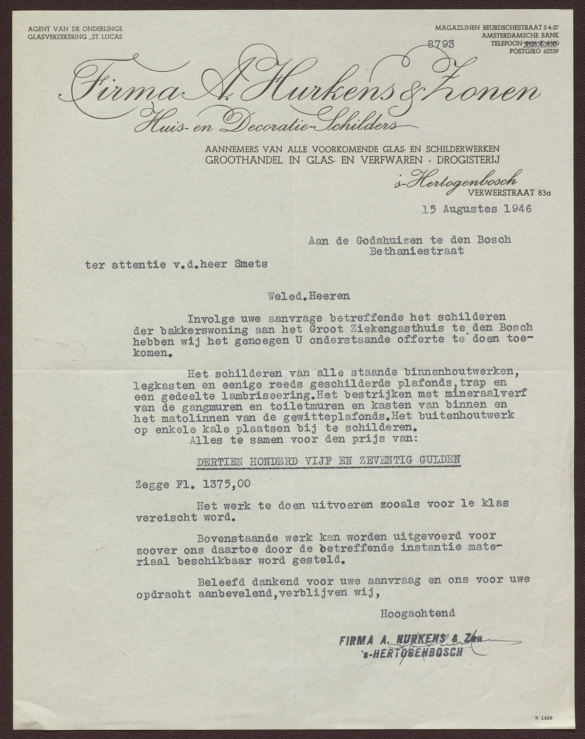 Firma A. Hurkens & Zonen : Huis- en Decoratie-Schilders