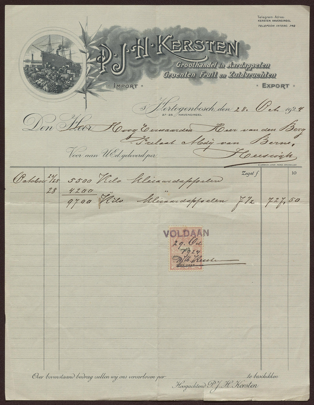 P.J.H. Kersten : Groothandel in Aardappelen Groenten Fruit en Zuidvruchten