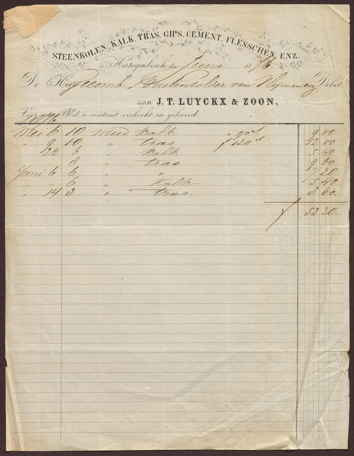 J.T. Luyckx & Zoon : Steenkolen, Kalk, Tras, Gips, Cement, Flesschen enz.