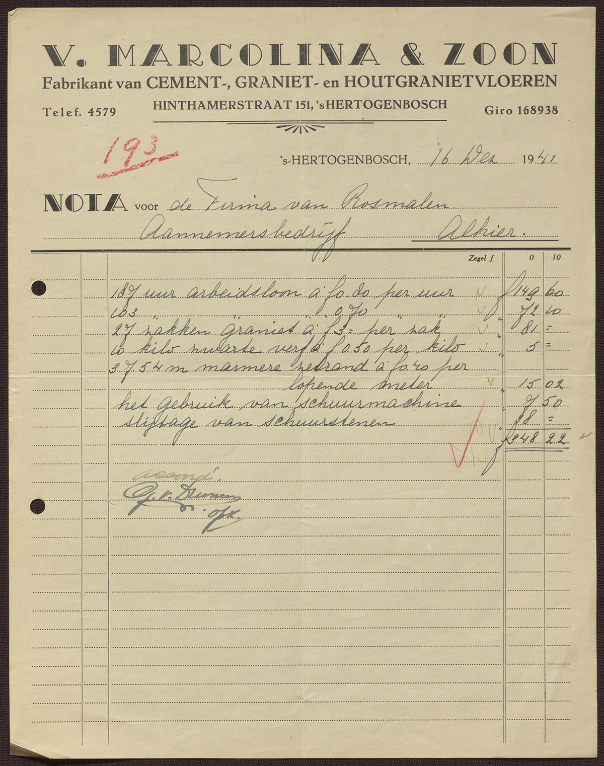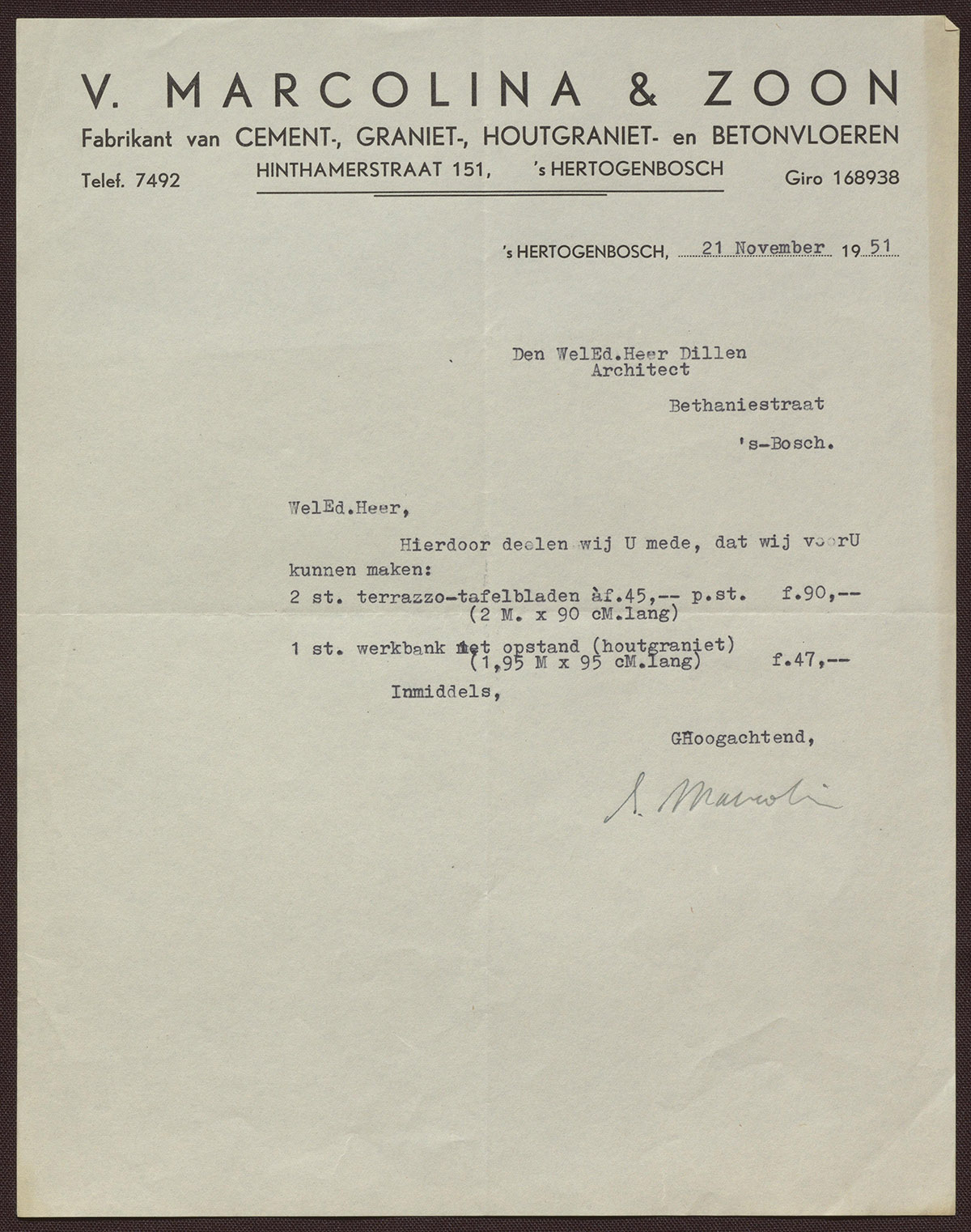 V. Marcolina & Zoon : Fabrikant van Cement-, Graniet- en Houtgraniet- en Betonvloeren