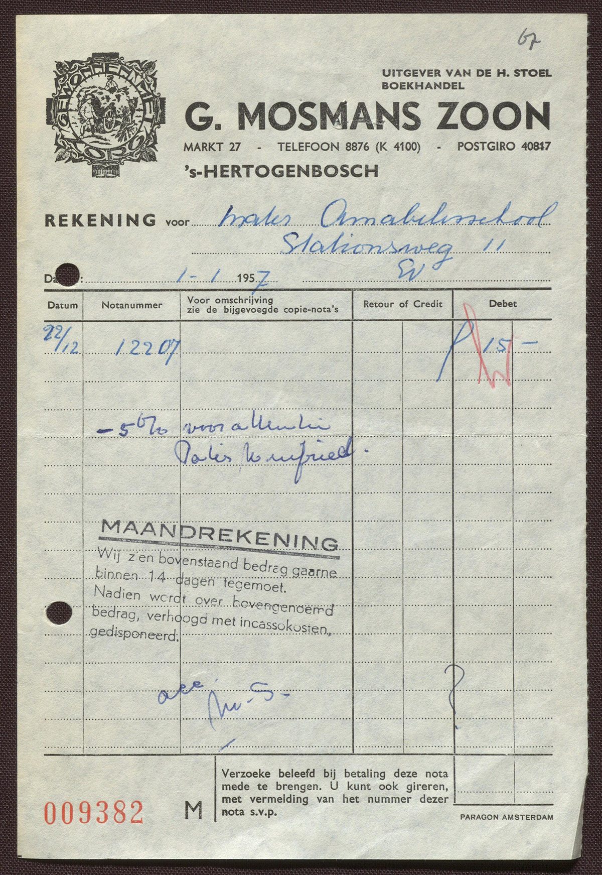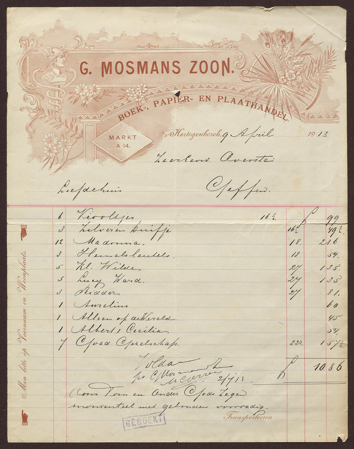 G. Mosmans Zoon : Boek-, Papier- en Plaathandel