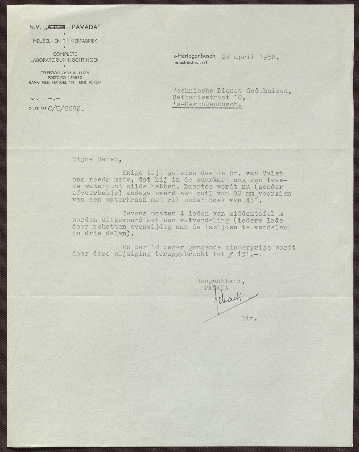 N.V. Pavada : Meubel- en timmerfabriek - Complete laboratoriuminrichtingen