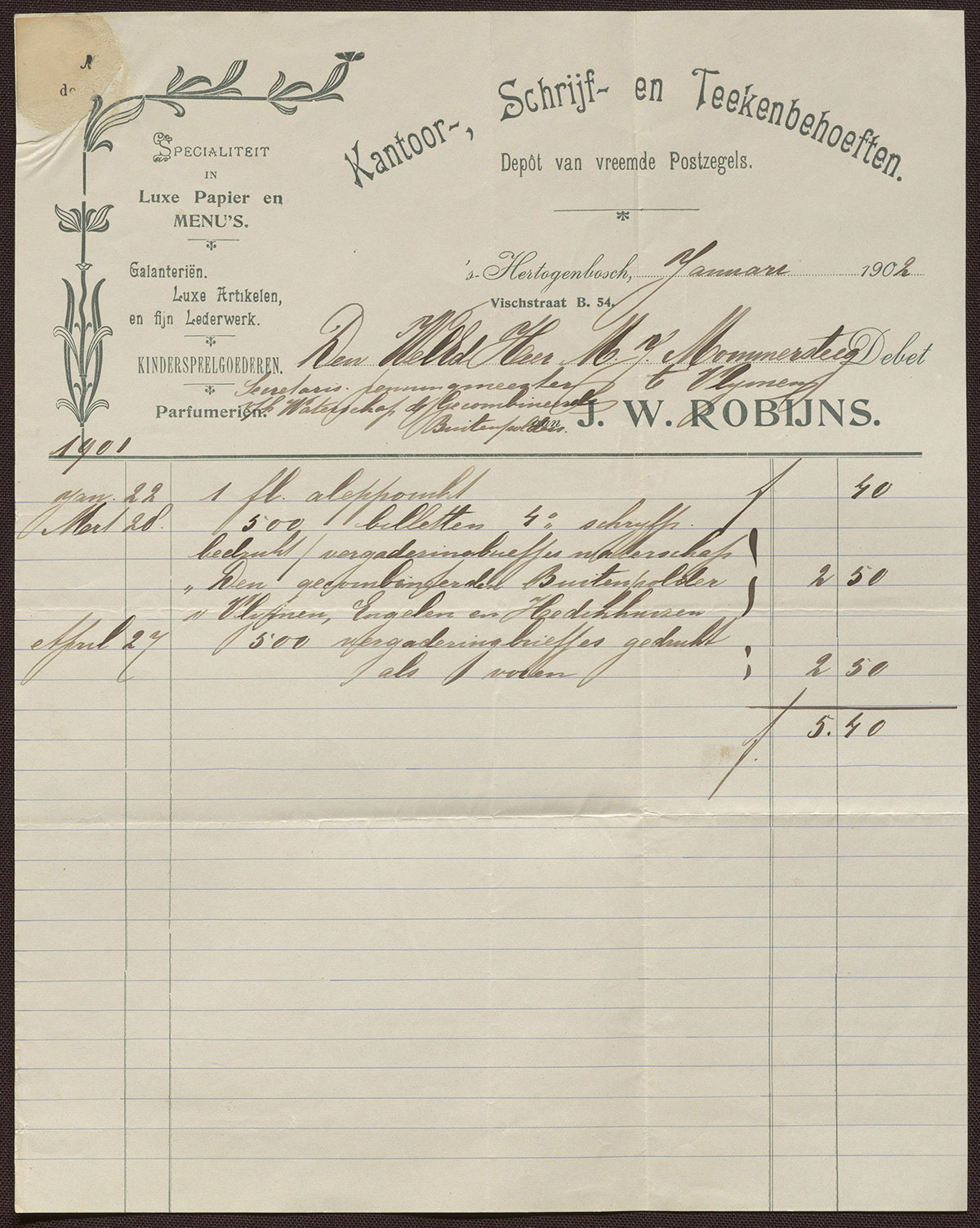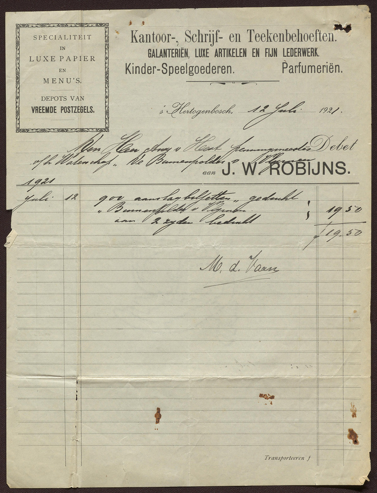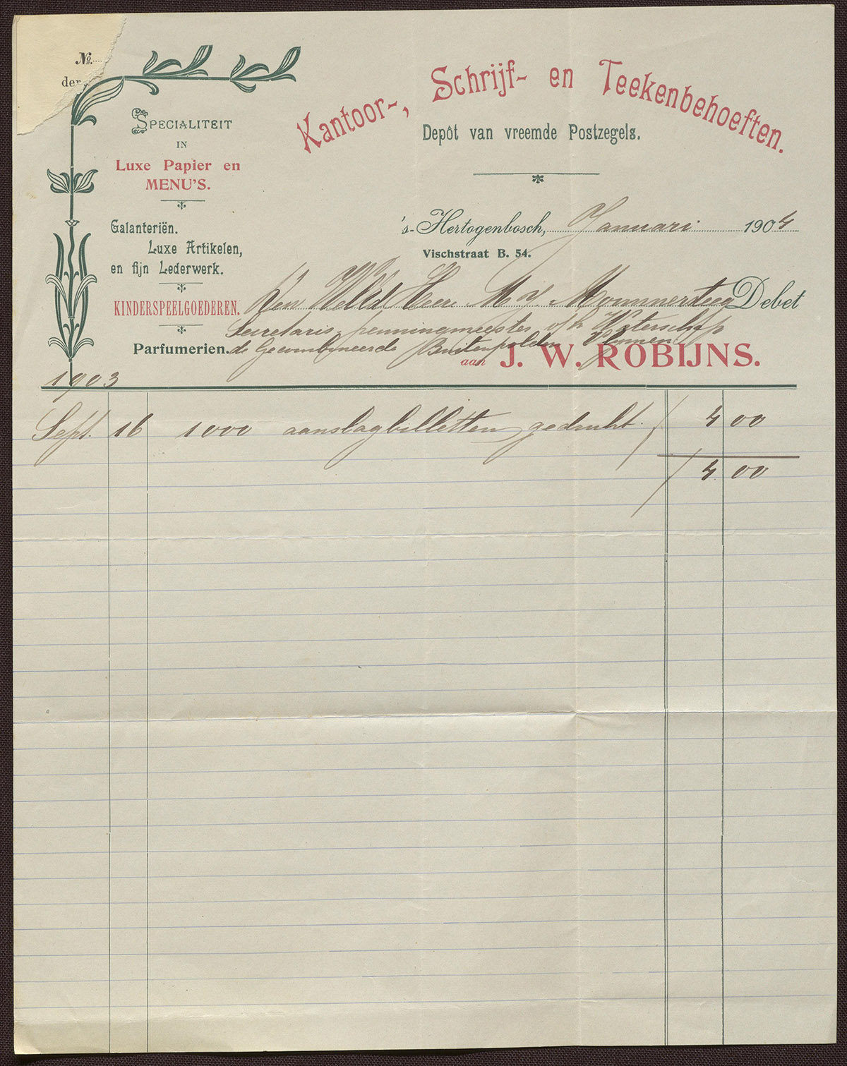 J.W. Robijns : Kantoor- Schrijf- en Teekenbehoeften