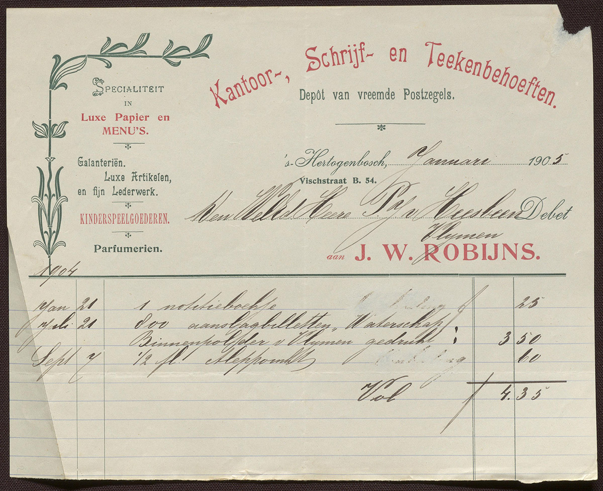 J.W. Robijns : Kantoor-, Schrijf- en Teekenbehoeften