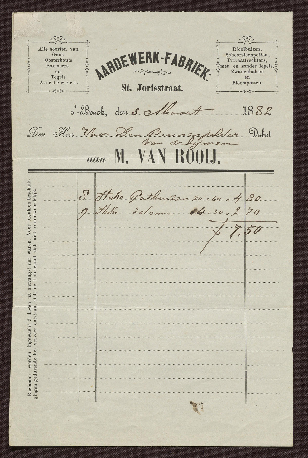 E. van Rooij : Fabriek van Goudsch en Oosterhoutsch aardewerk