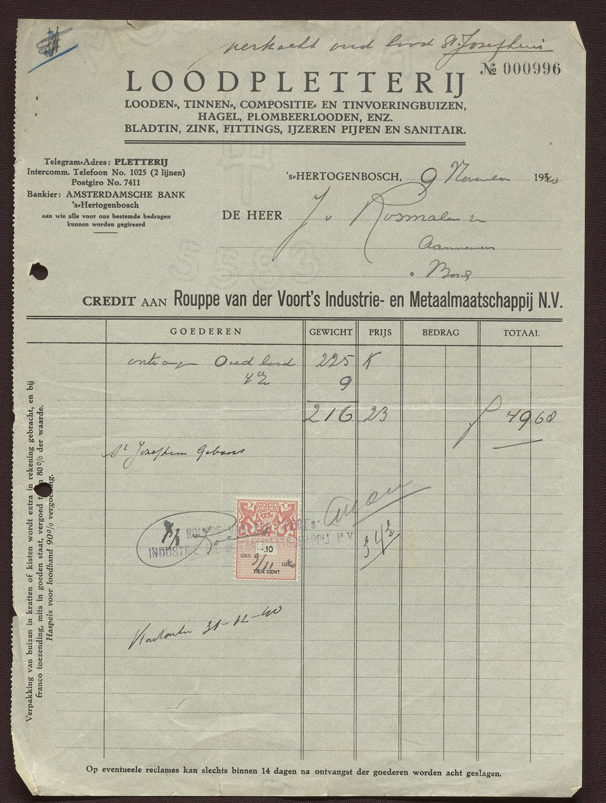 Rouppe van der Voort & Zoon : Loodpletterij