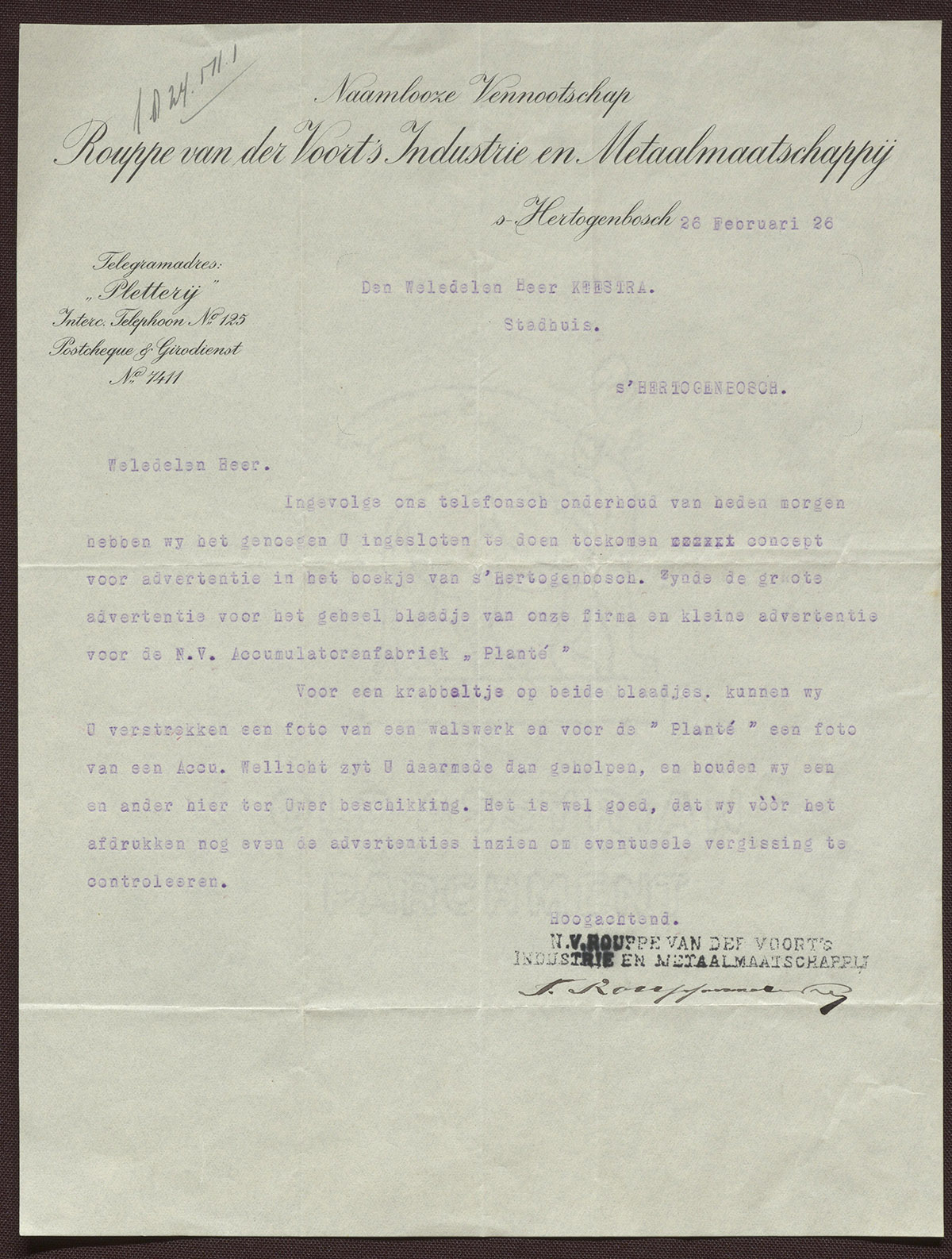 Rouppe van der Voort's Industrie- en Metaalmaatschappij N.V. - Loodpletterij