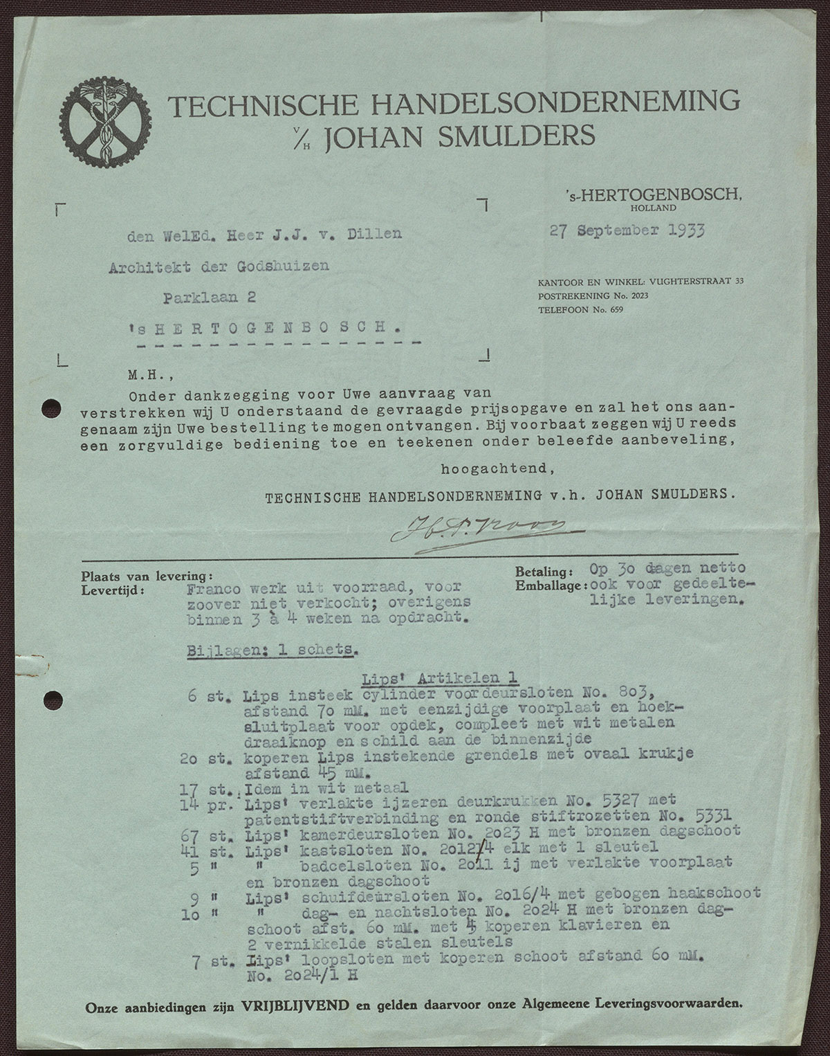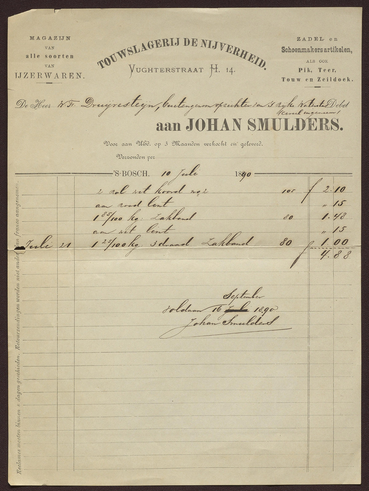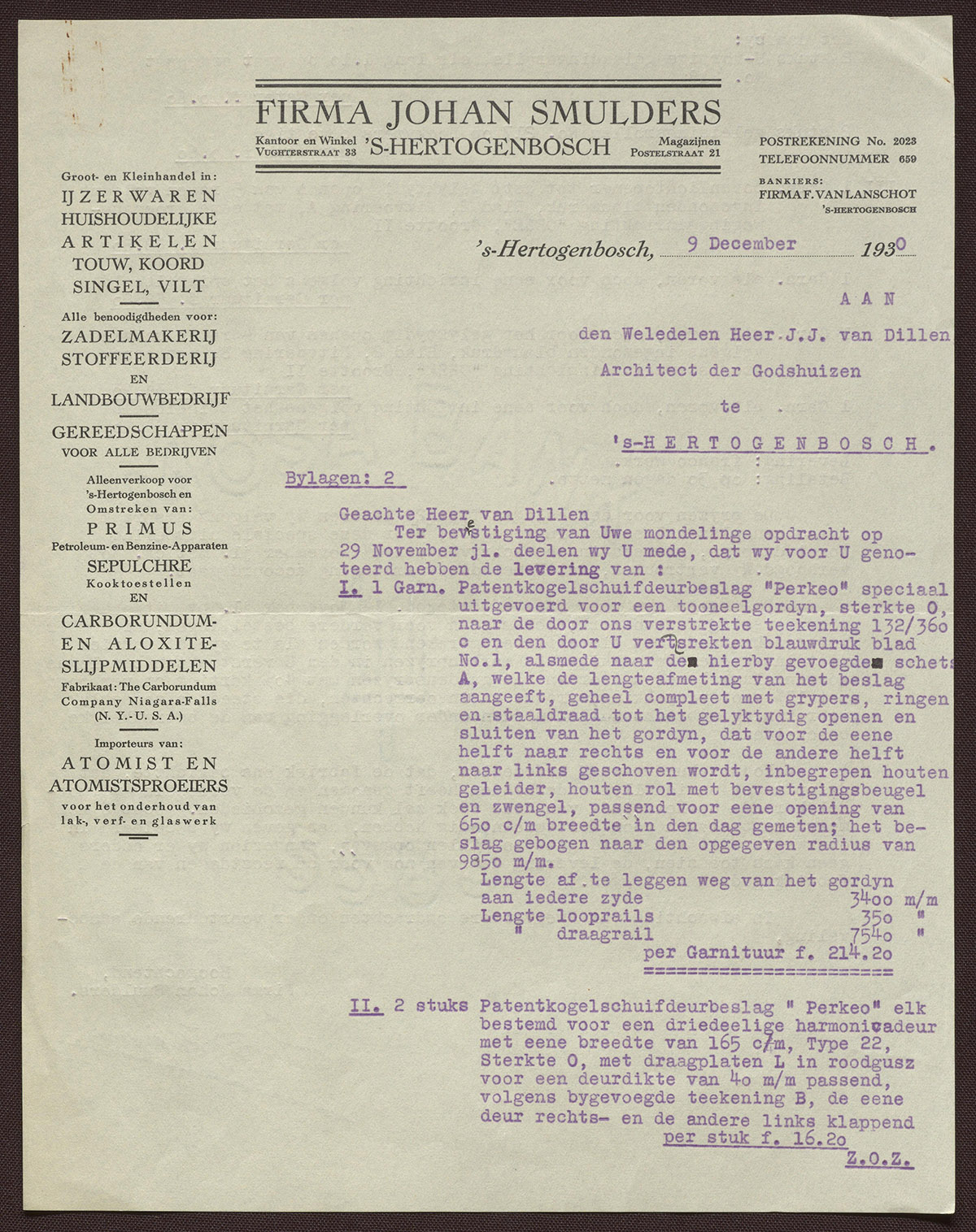 Firma Johan Smulders : IJzerwaren huishoudelijke artikelen touw, koord singel, vilt ...