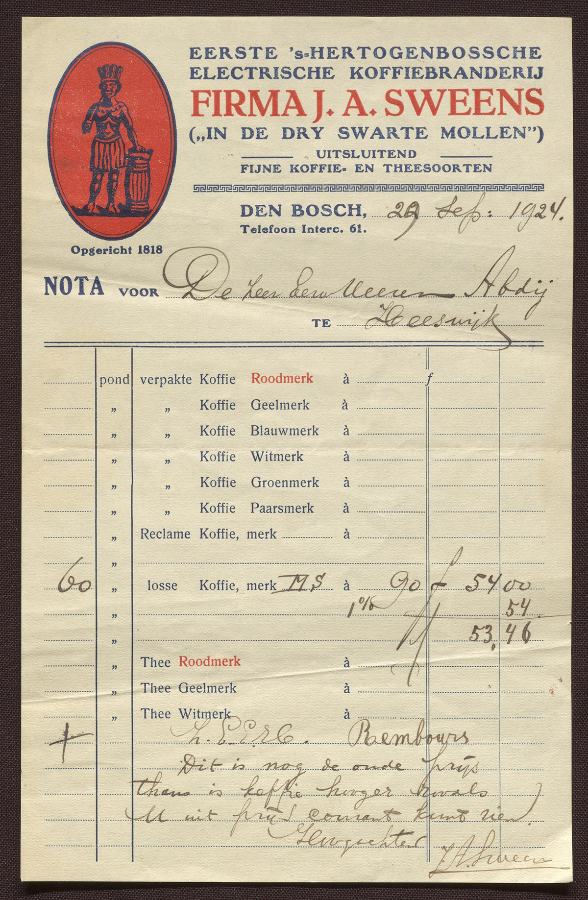 Eerste 's-Hertogenbossche Electrische Koffiebranderij Firma J.A. Sweens (In de Dry Swarte Mollen)