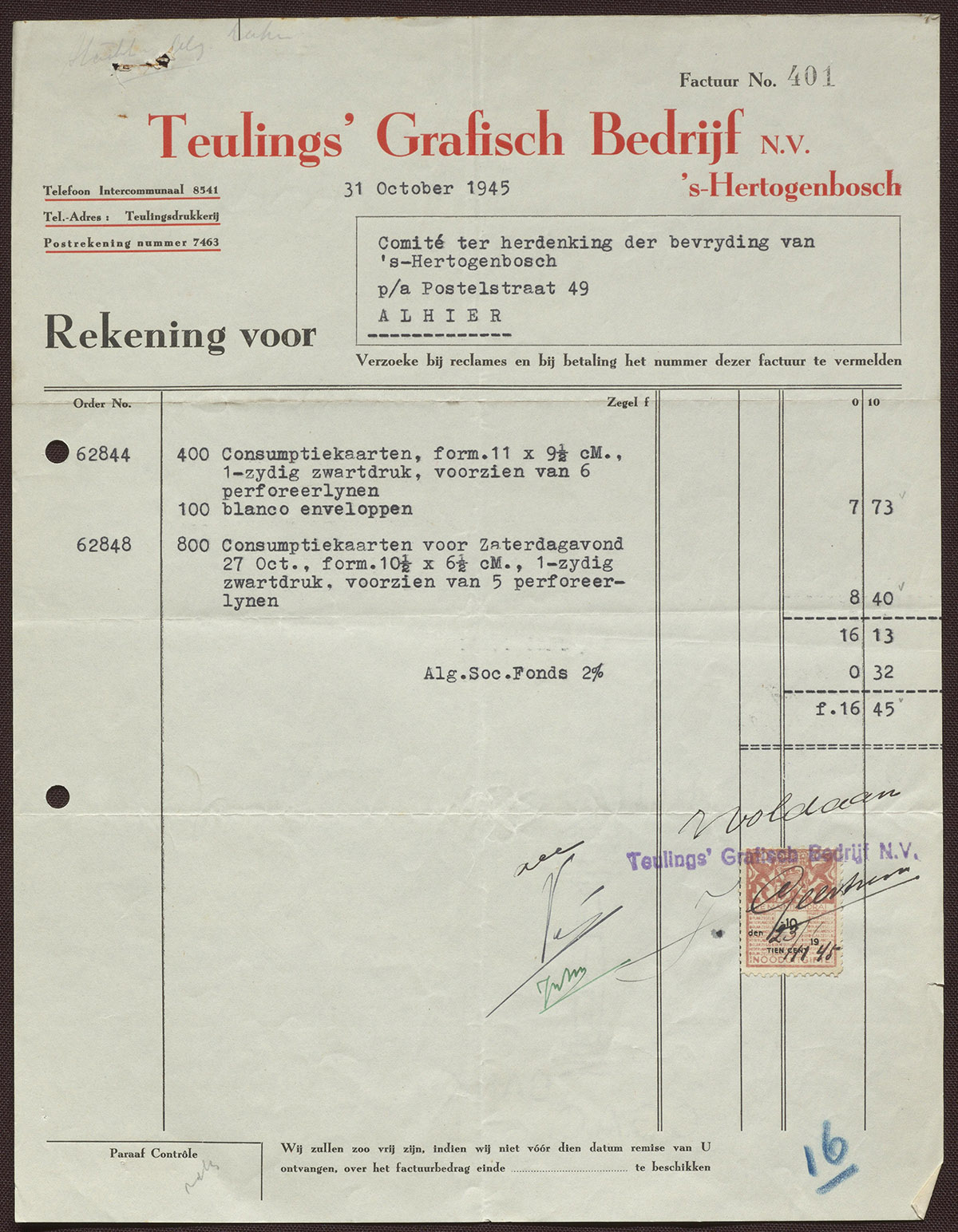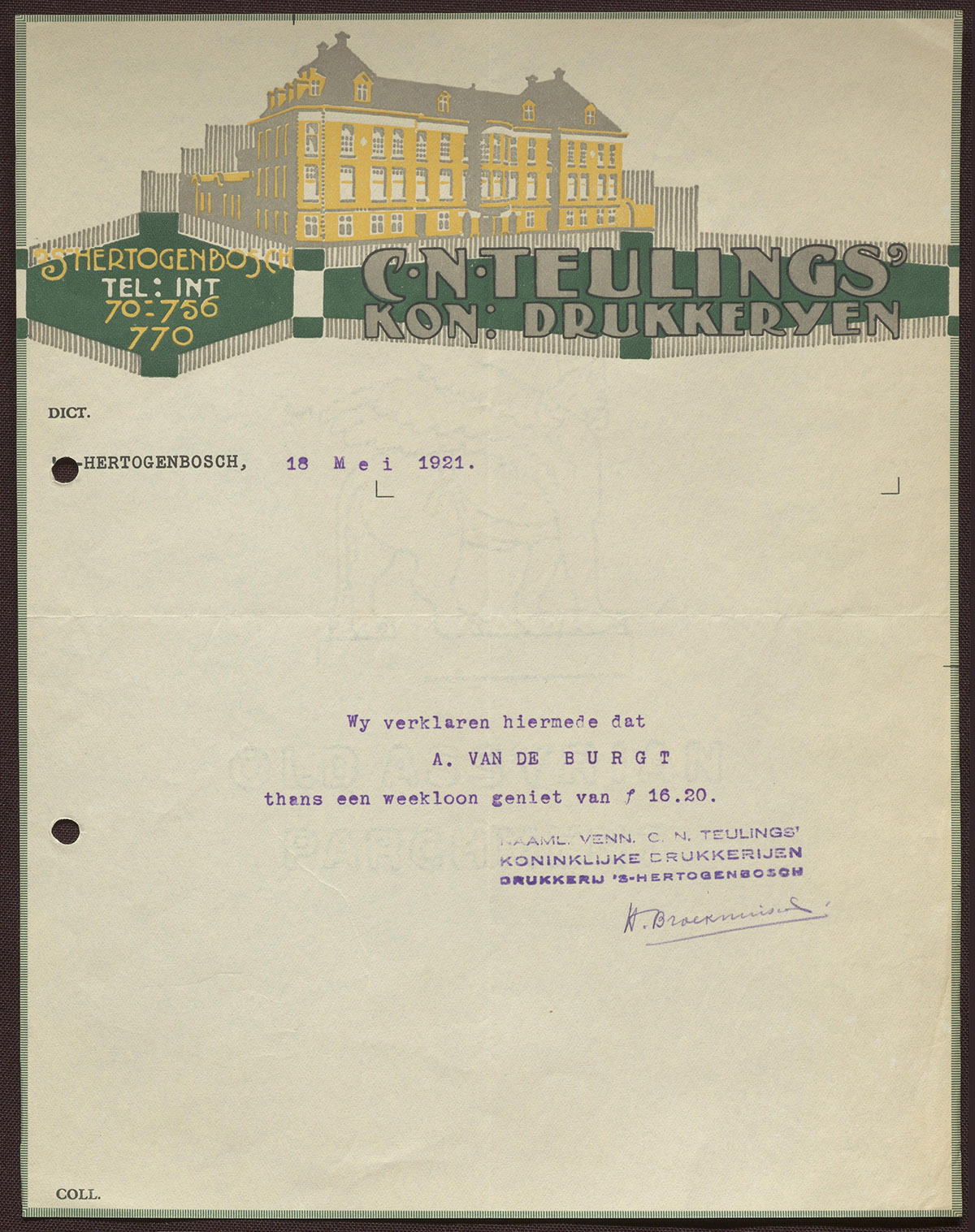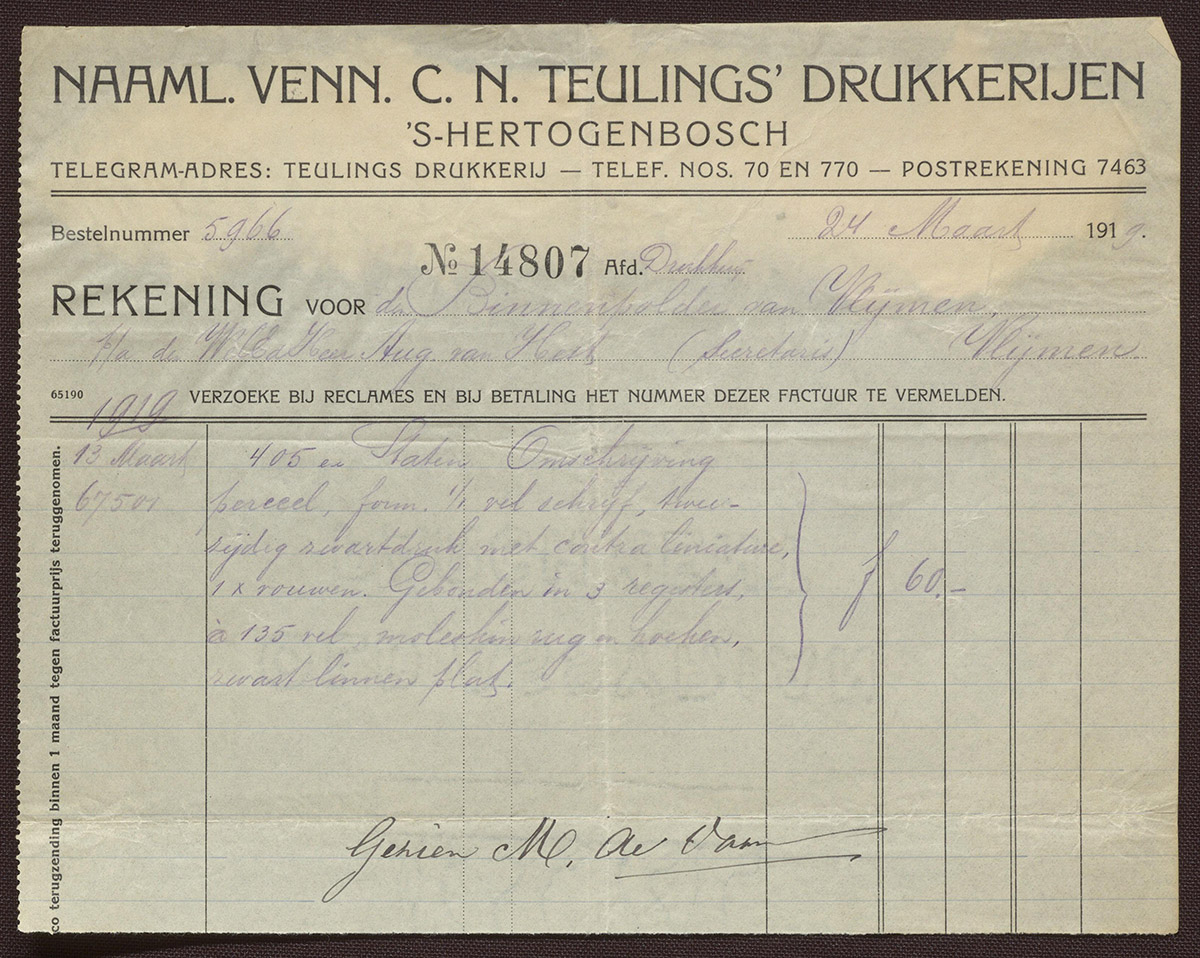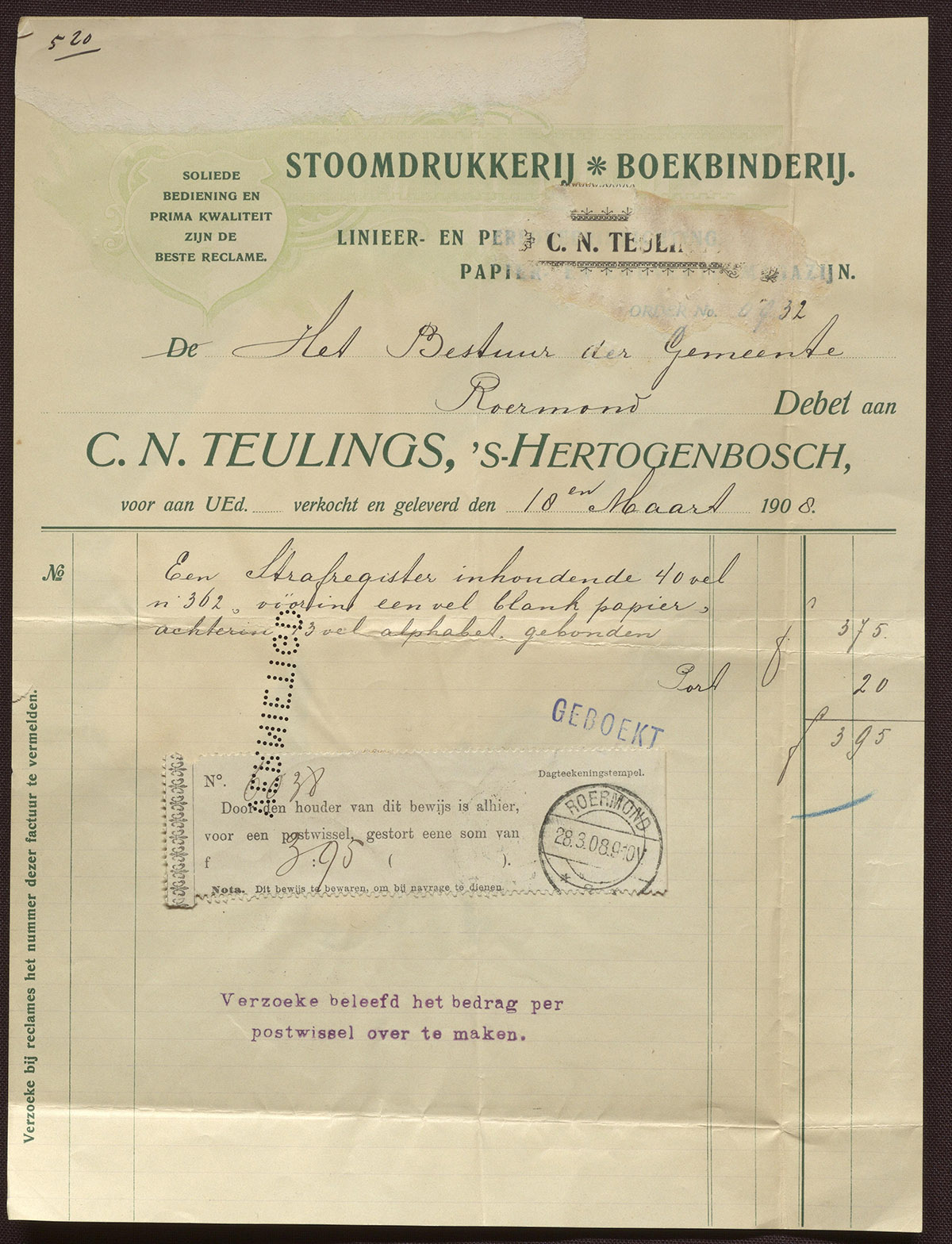 C.N. Teulings 's-Hertogenbosch : Stoomdrukkerij en Boekbinderij : Papier Couverten : Bureaubehoefen