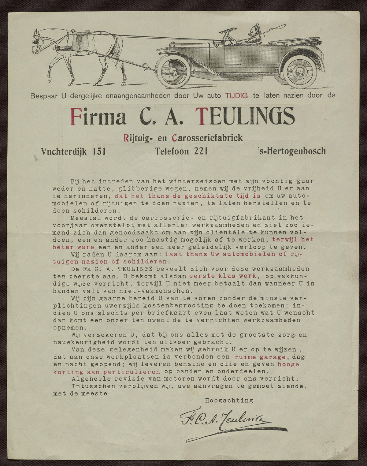 Firma C.A. Teulings : Rijtuig- en Carosseriefabriek