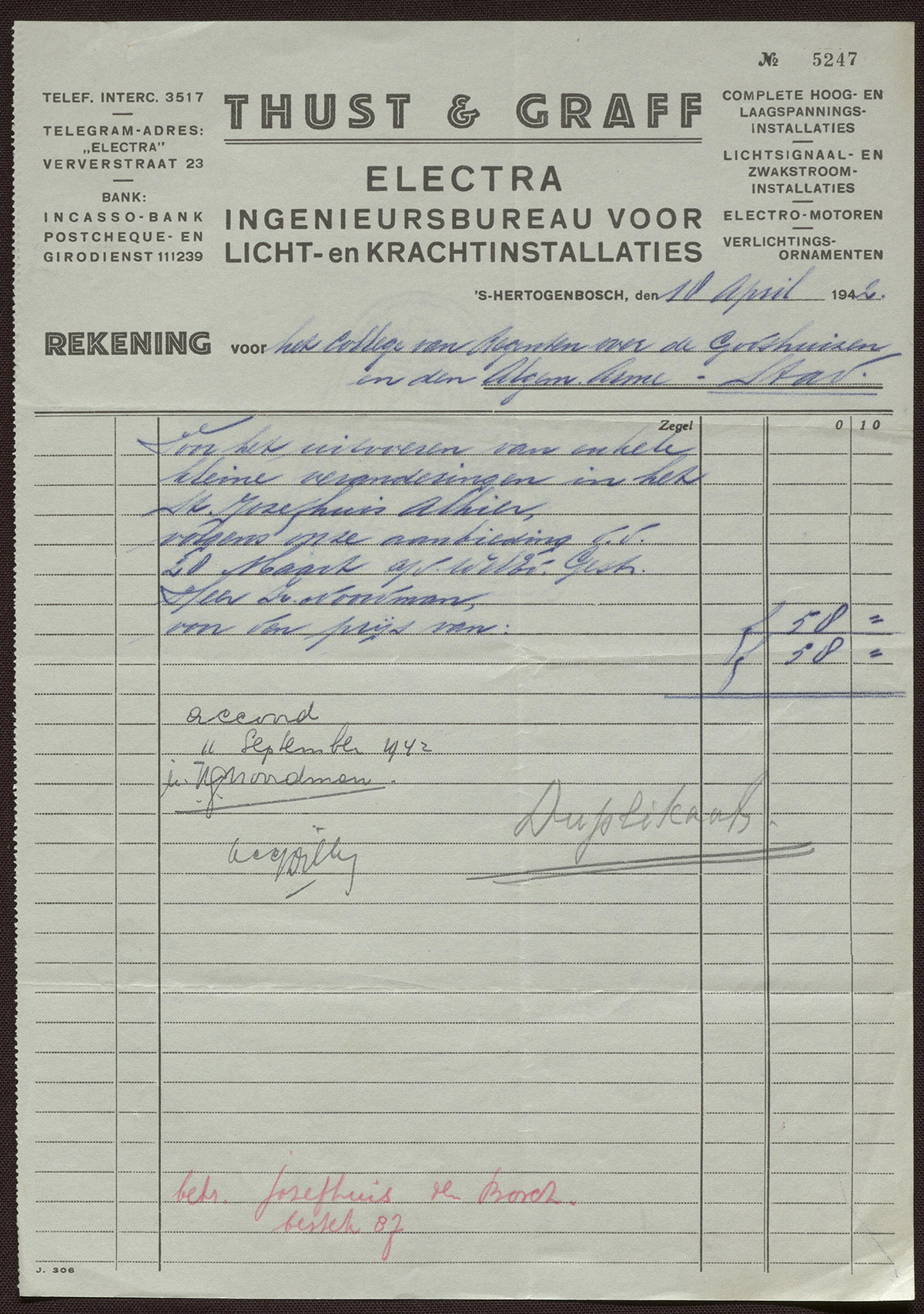 Electra : Ingenieursbureau voor Licht- en Krachtinstallaties : Thust & Graff