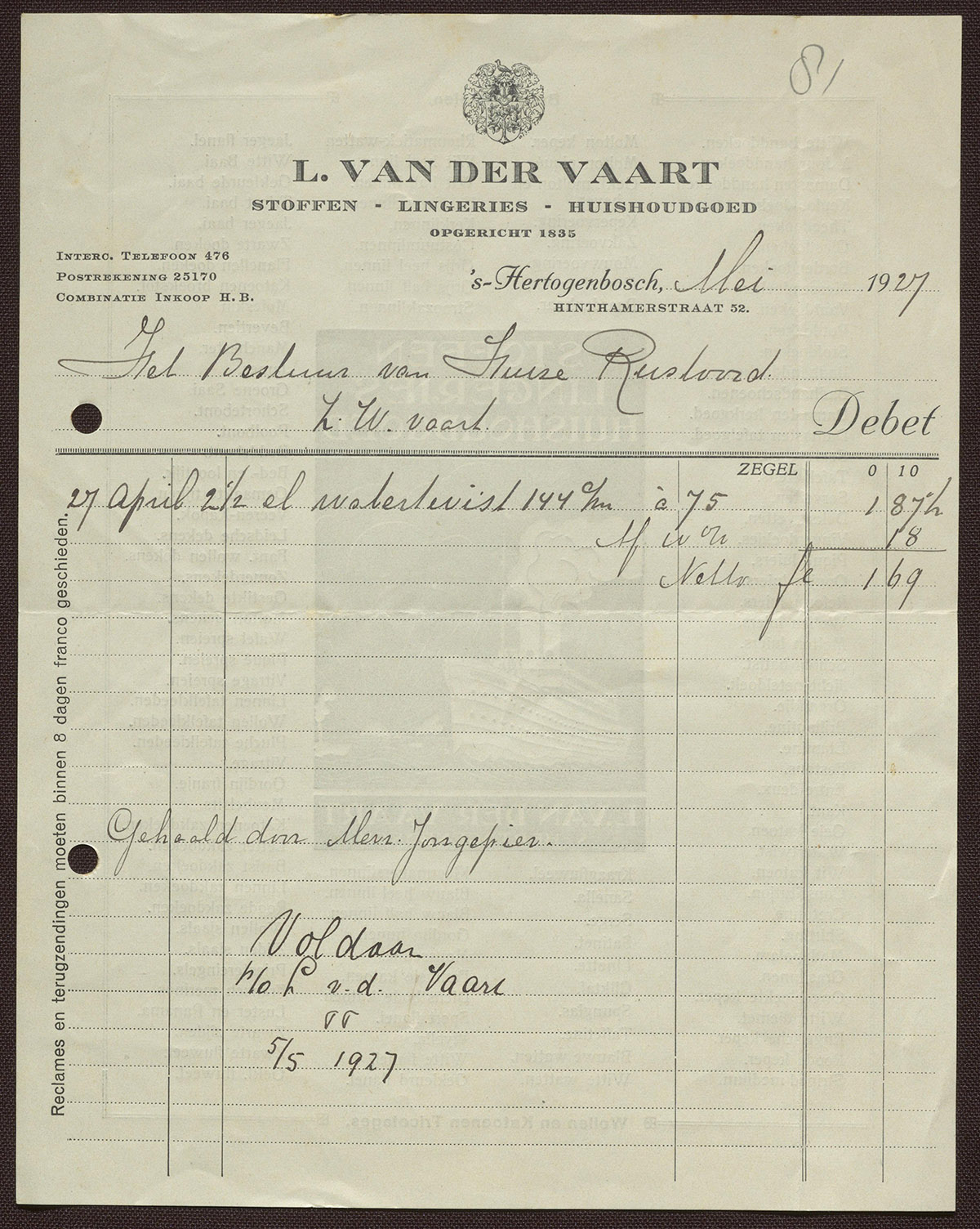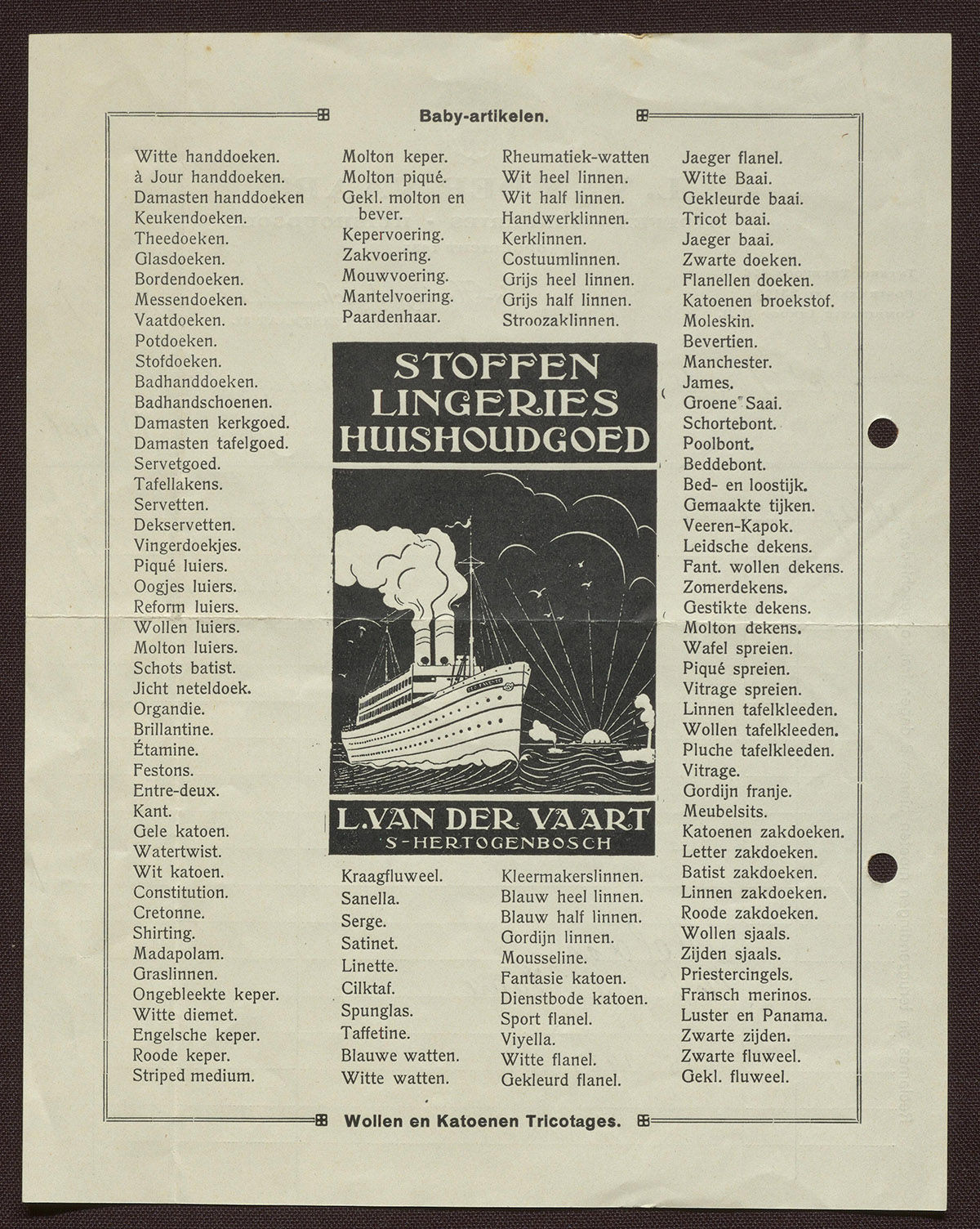 L. van der Vaart : Stoffen - Lingeries - Huishoudgoed
