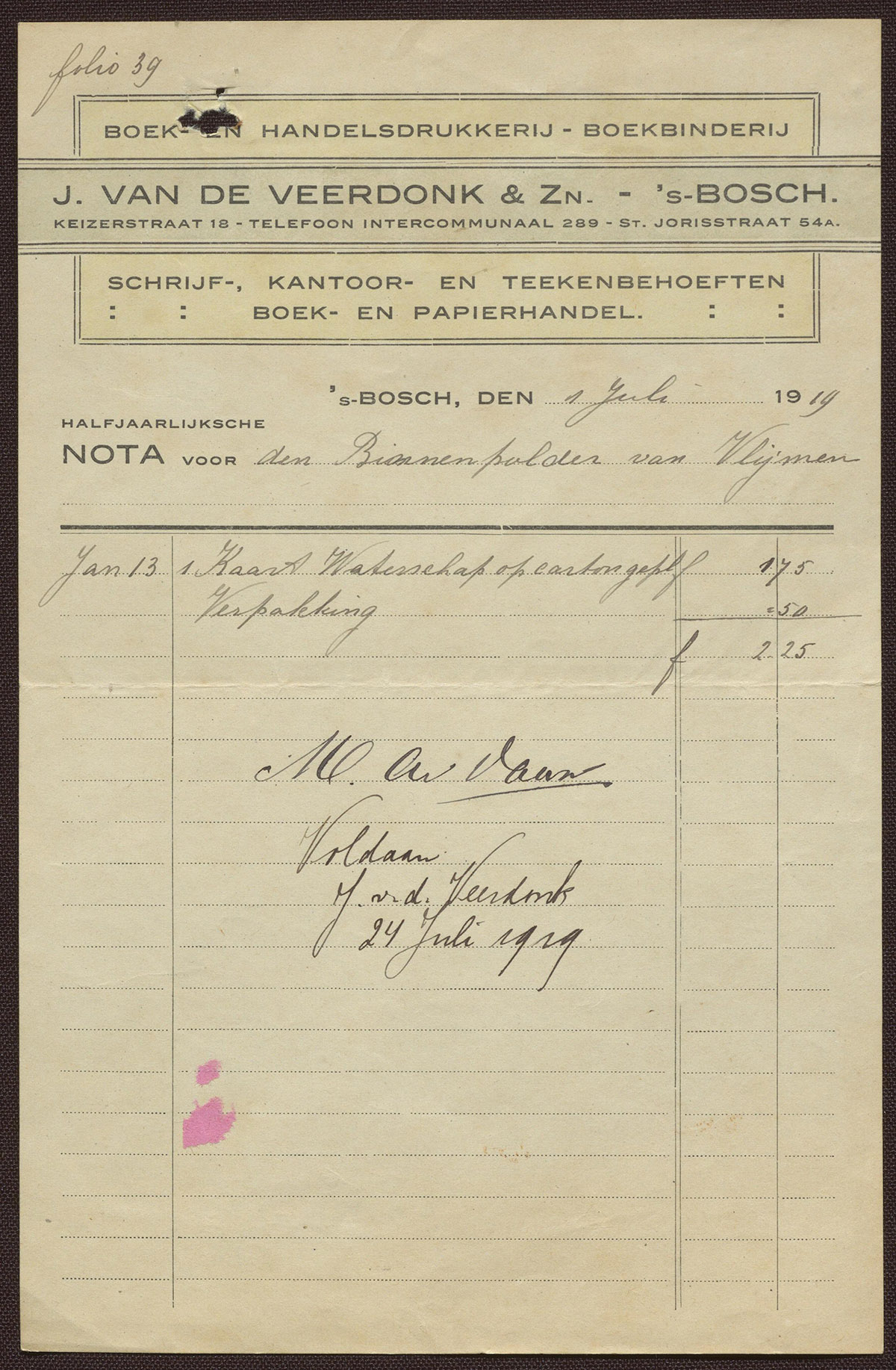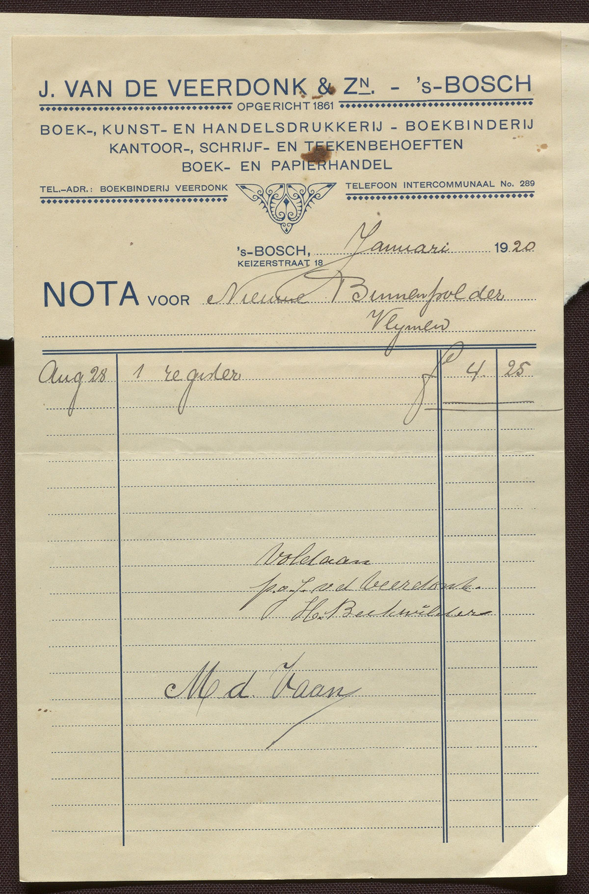 J. van de Veerdonk & Zn. - 's-Bosch : Boek- en Handelsdrukkerij- Boekbinderij