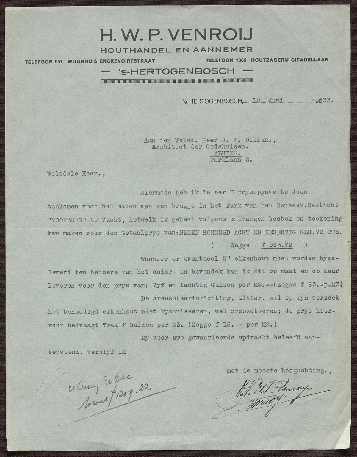 's-Hertogenbosch, Enckevoirtstraat 3 (corresp.-adres) / Citadellaan (houtzagerij)