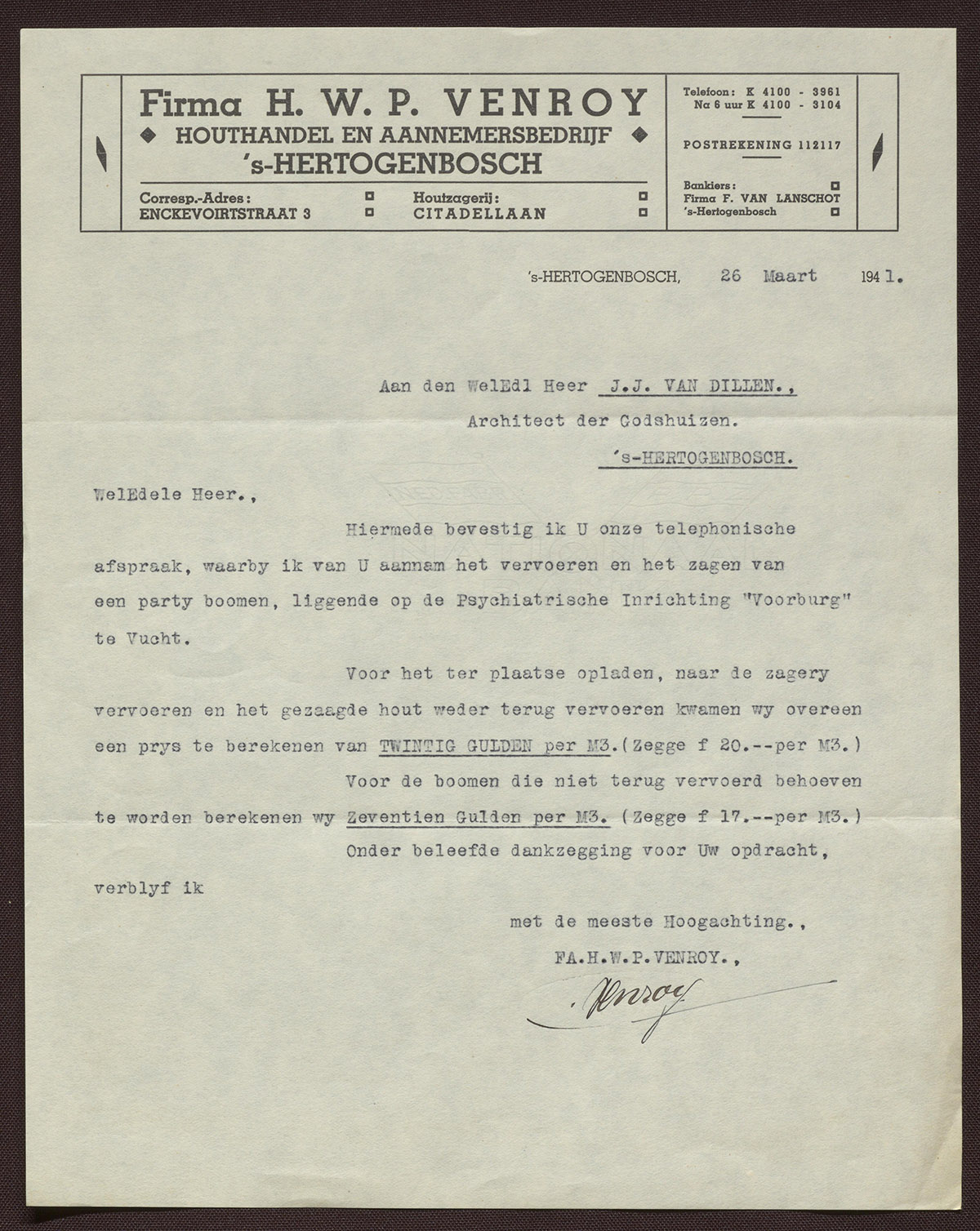 Firma H.W.P. Venroij : Houthandel en Aannemersbedrijf