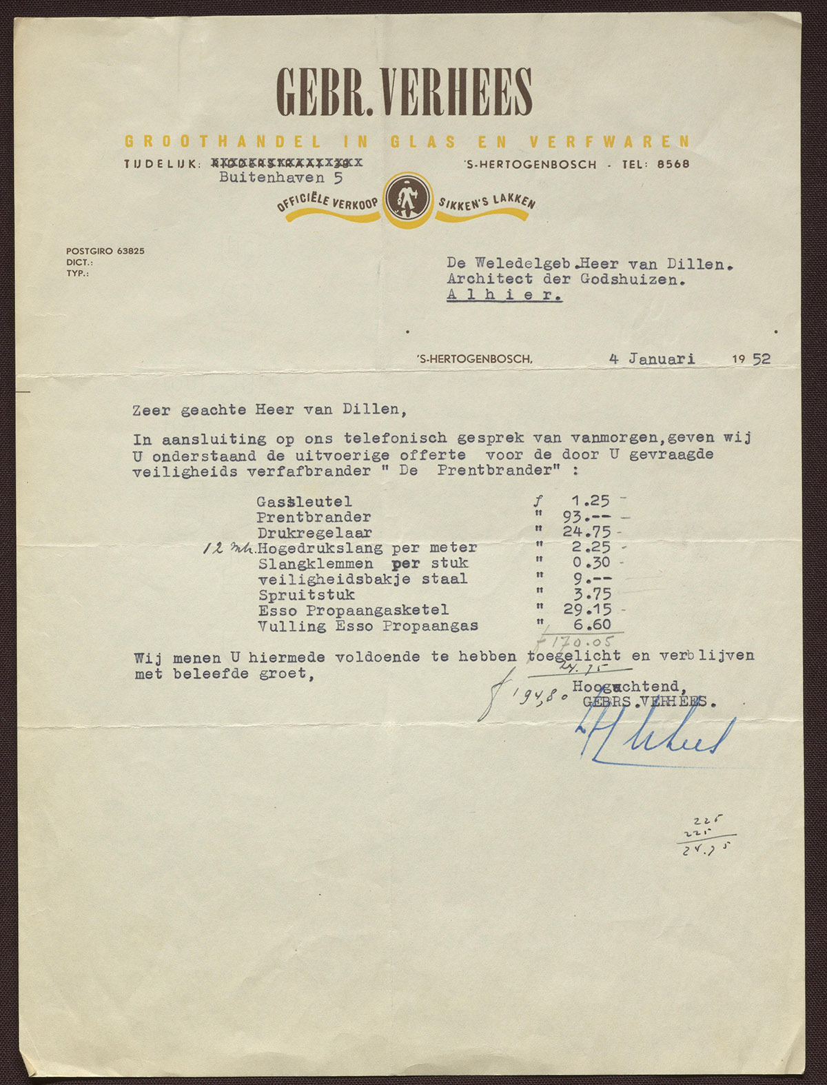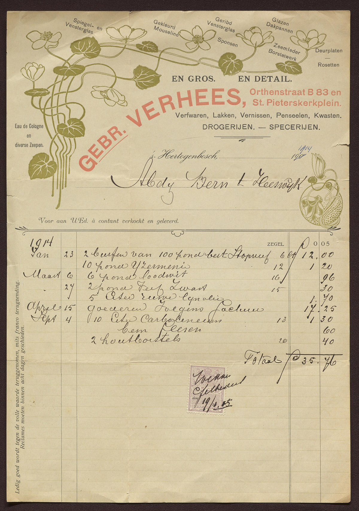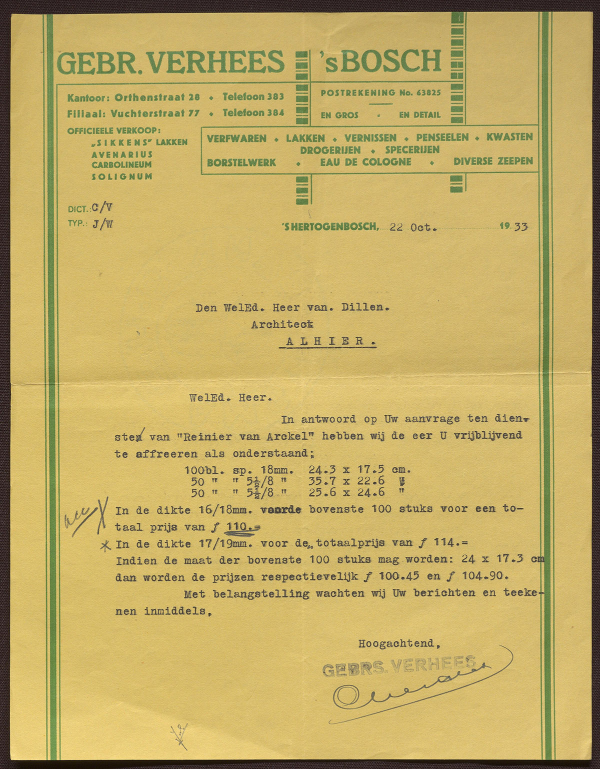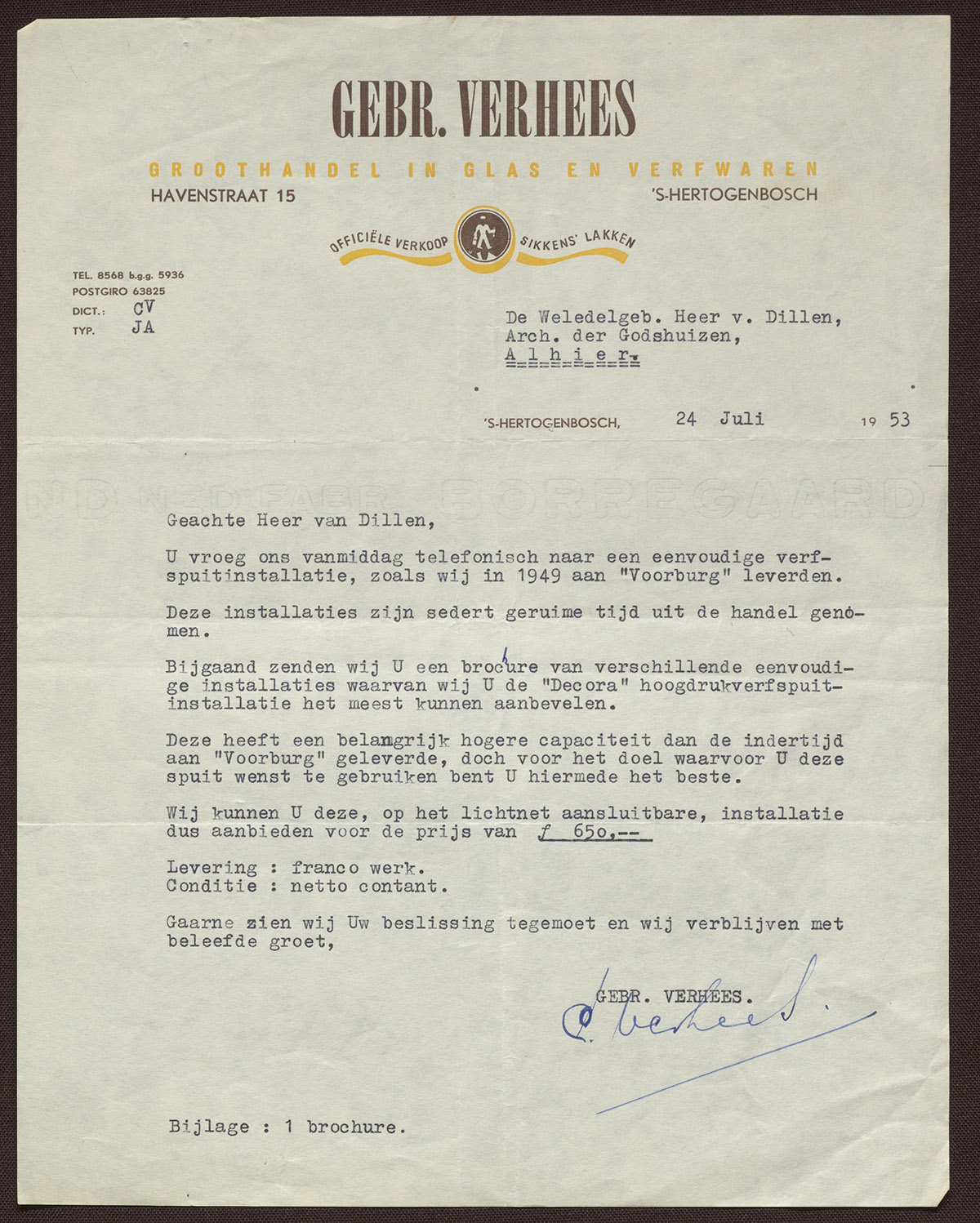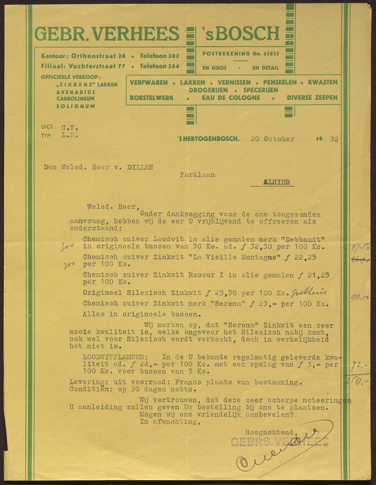 Gebr. Verhees 's Bosch : Verfwaren - Lakken - Vernissen - Penseelen - Kwasten etc.