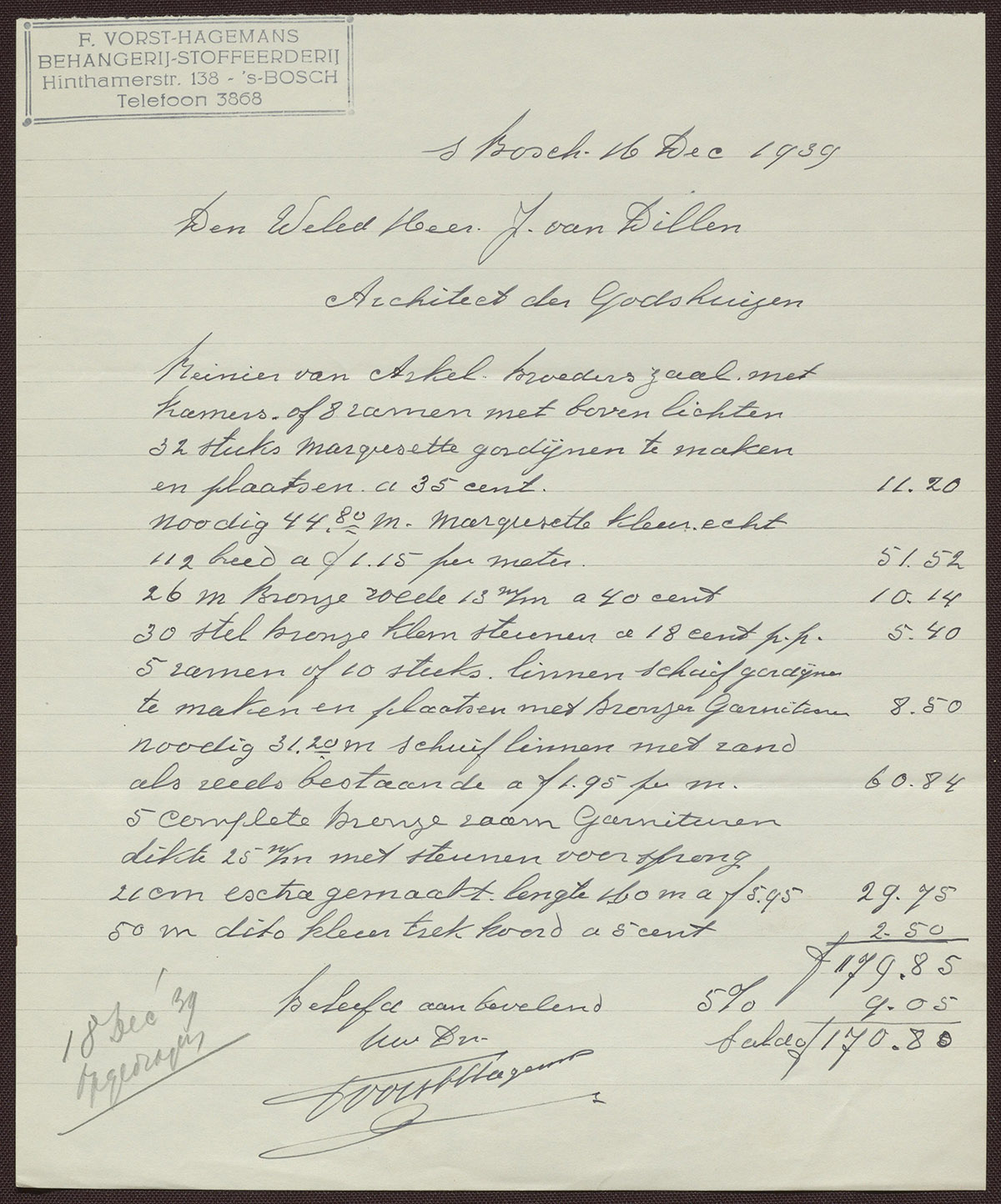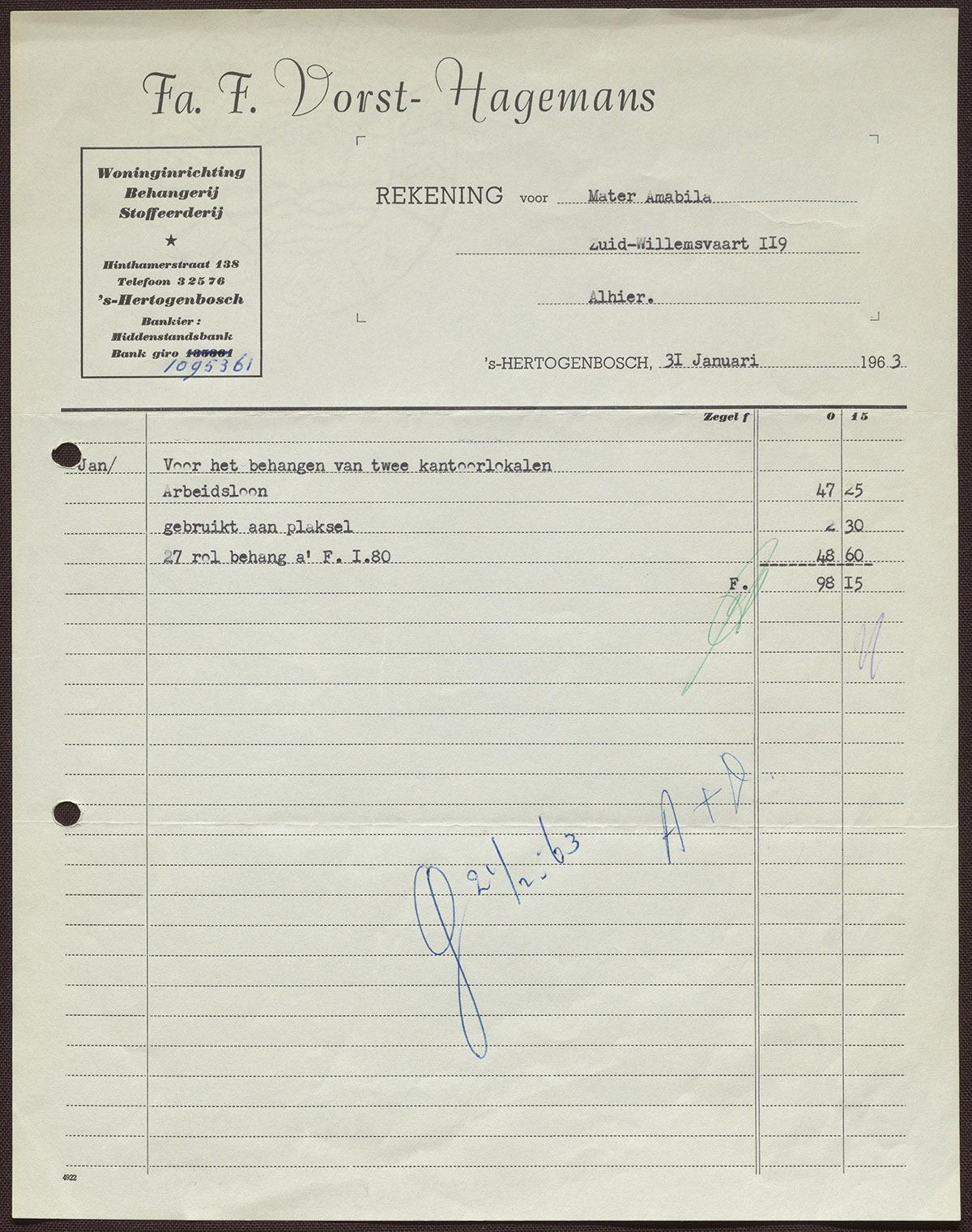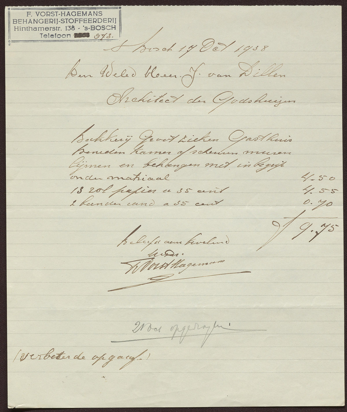 F. Vorst-Hagemans : Behangerij - Stoffeerderij