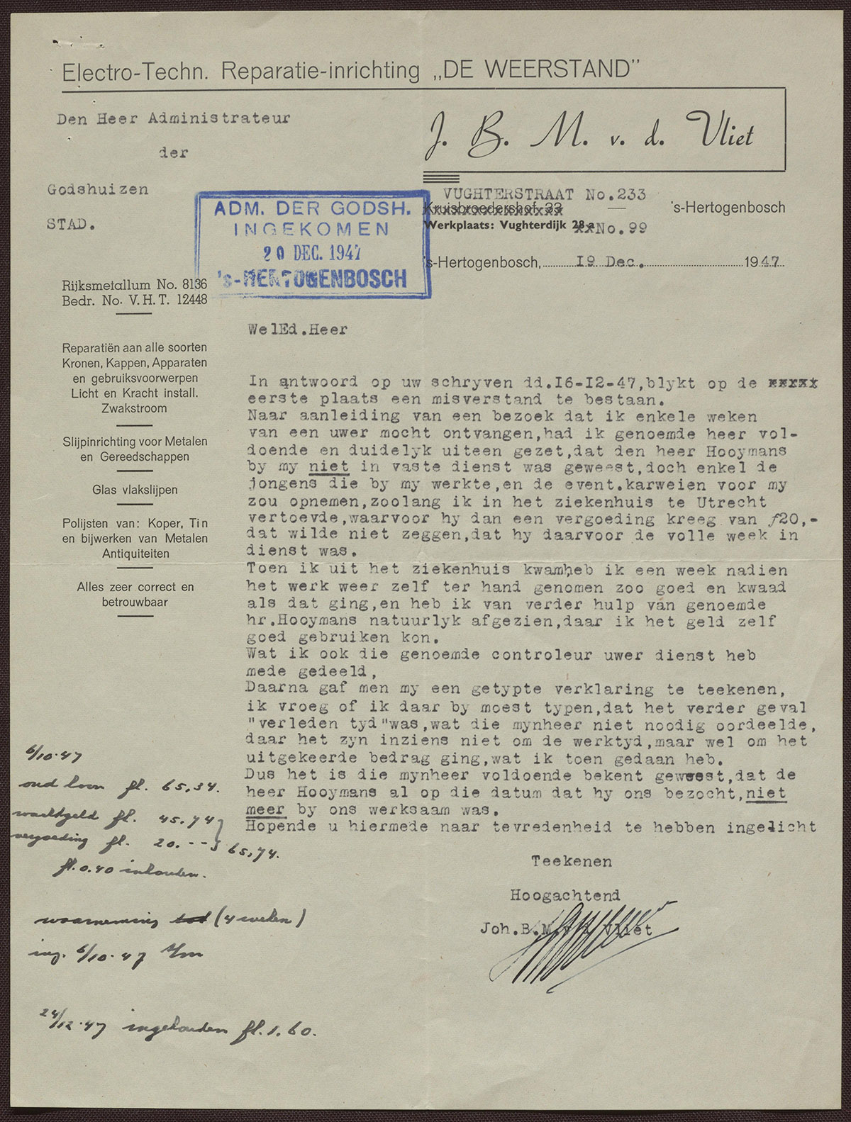 J.B.M. v.d. Vliet : Electro-Techn. Reparatie-inrichting 'De Weerstand'