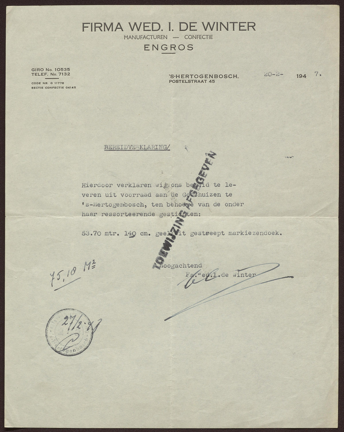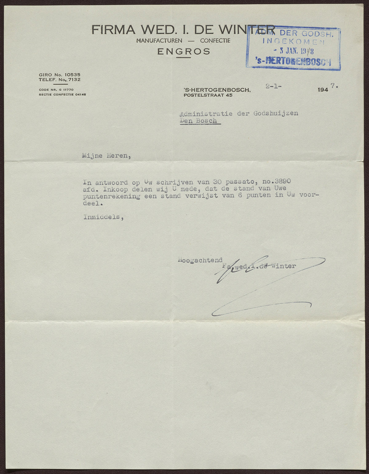 Firma Wed. I. de Winter : Manufacturen - Confectie