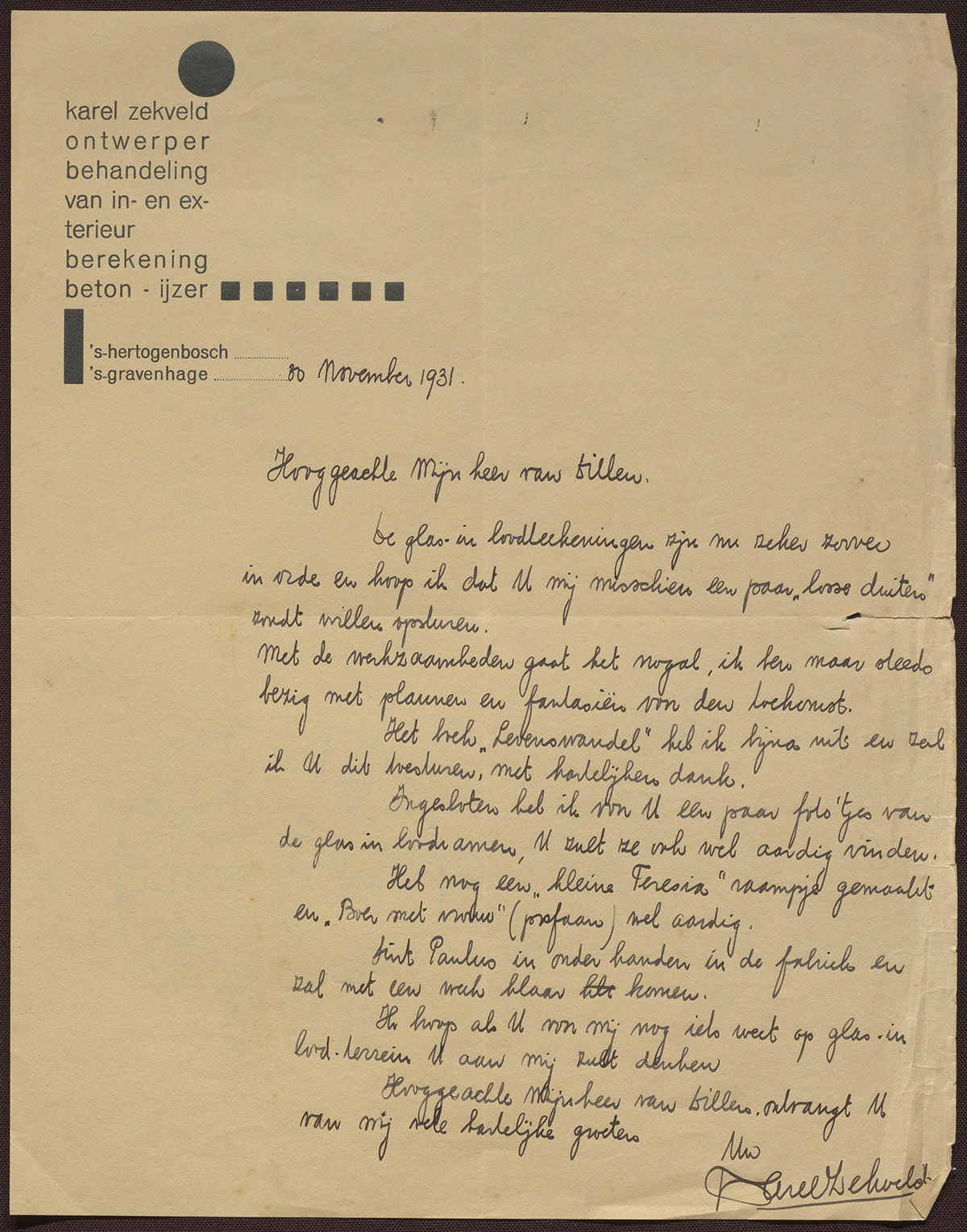 Karel Zekveld : ontwerper - behandeling van in- en exterieur - berekening beton - ijzer