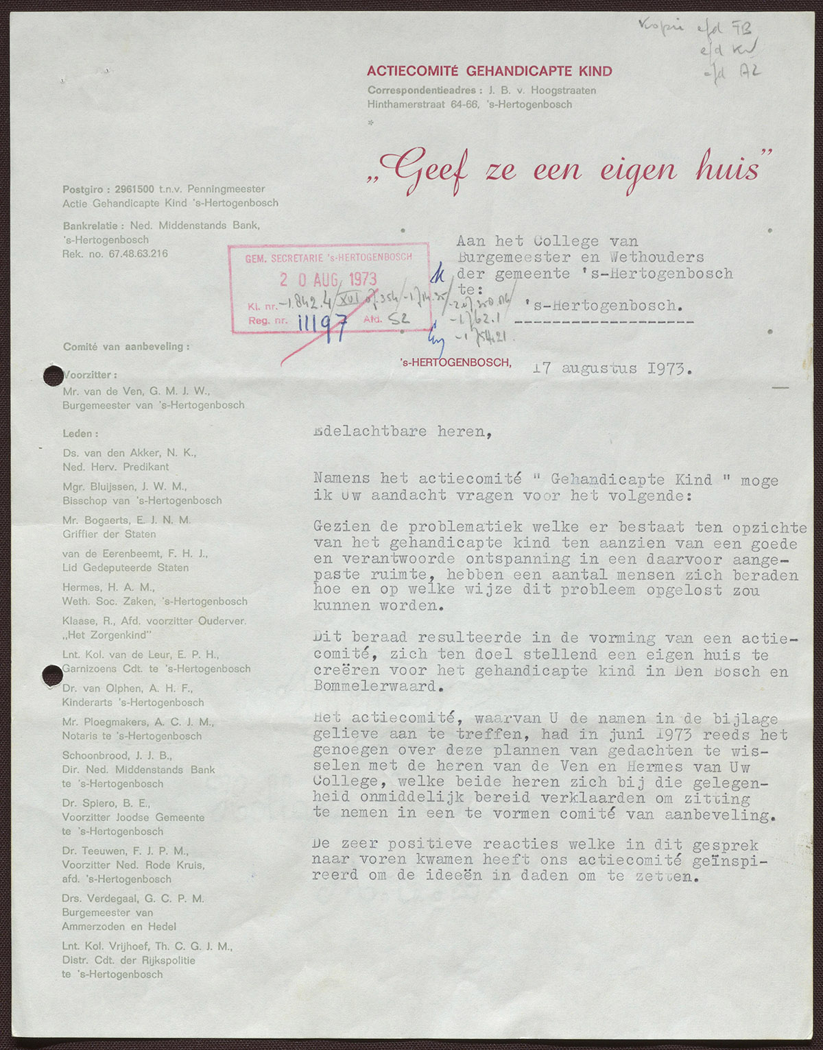 Actiecomité Gehandicapte Kind 'Geef ze een eigen huis'