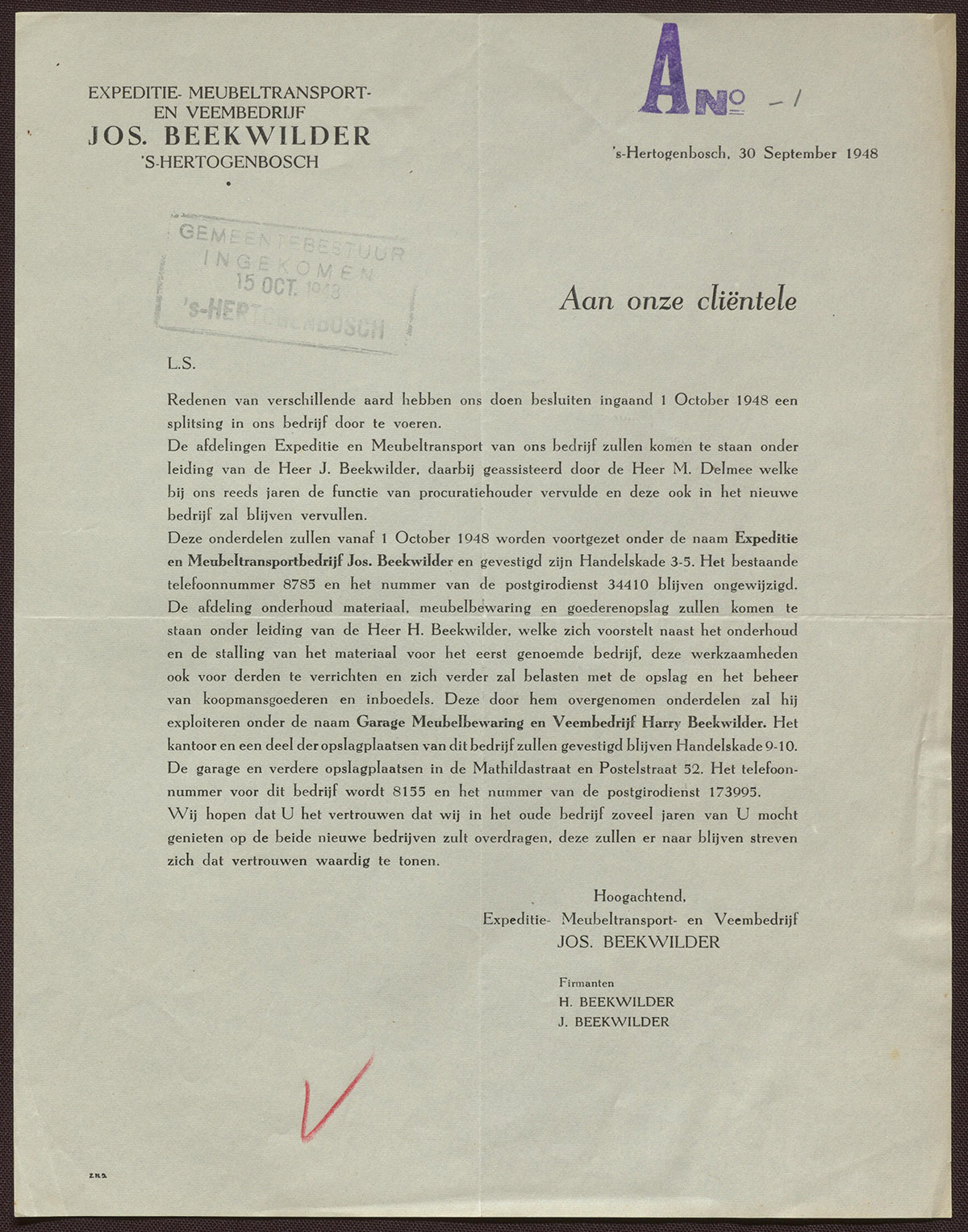 Jos. Beekwilder : Expeditie-, Meubeltransport- en Veembedrijf