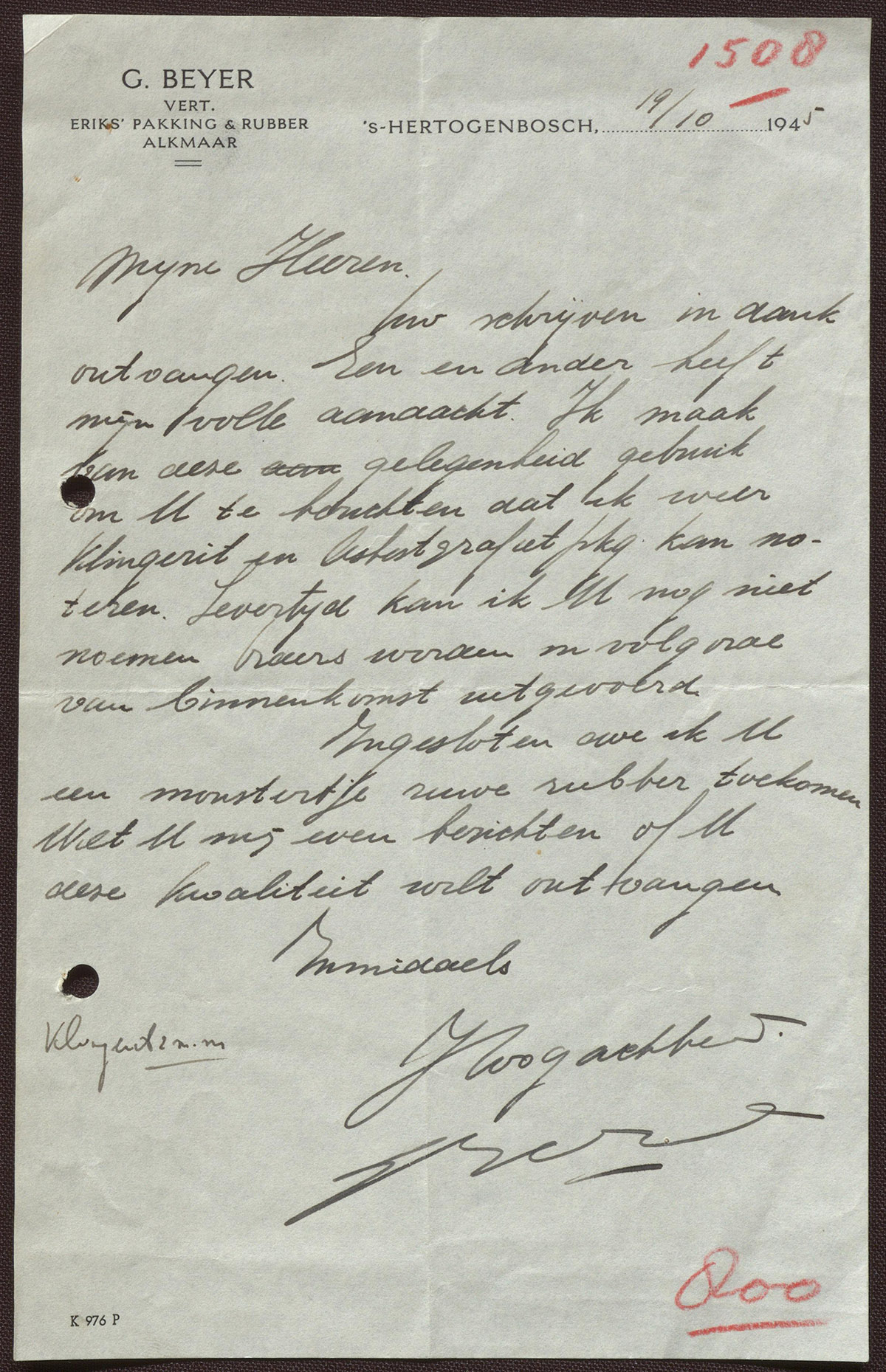 G. Beyer : Vertegenwoordiger Erik's Pakking & Rubber