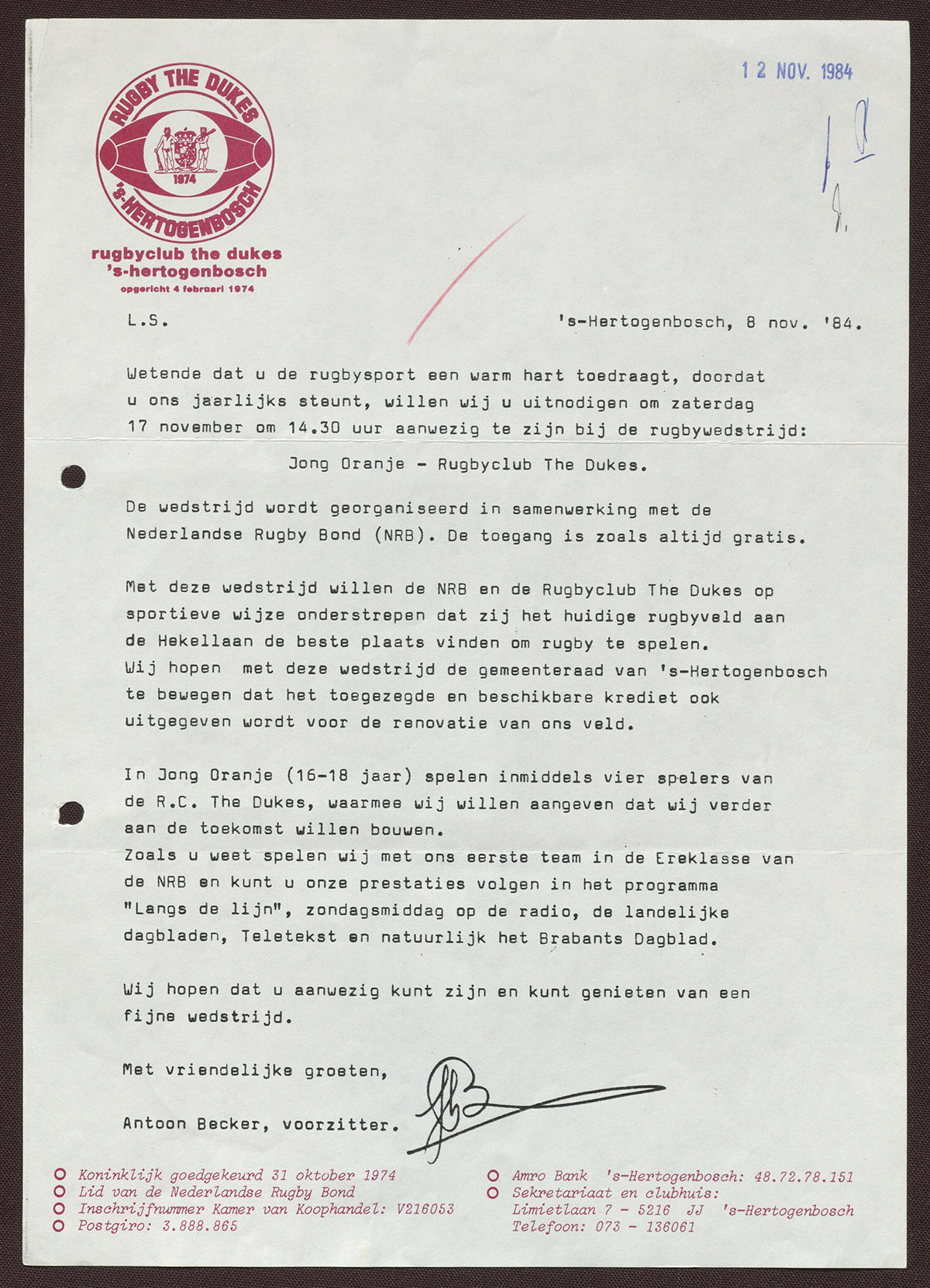 's-Hertogenbosch, Limietlaan 7 (secretariaat en clubhuis)