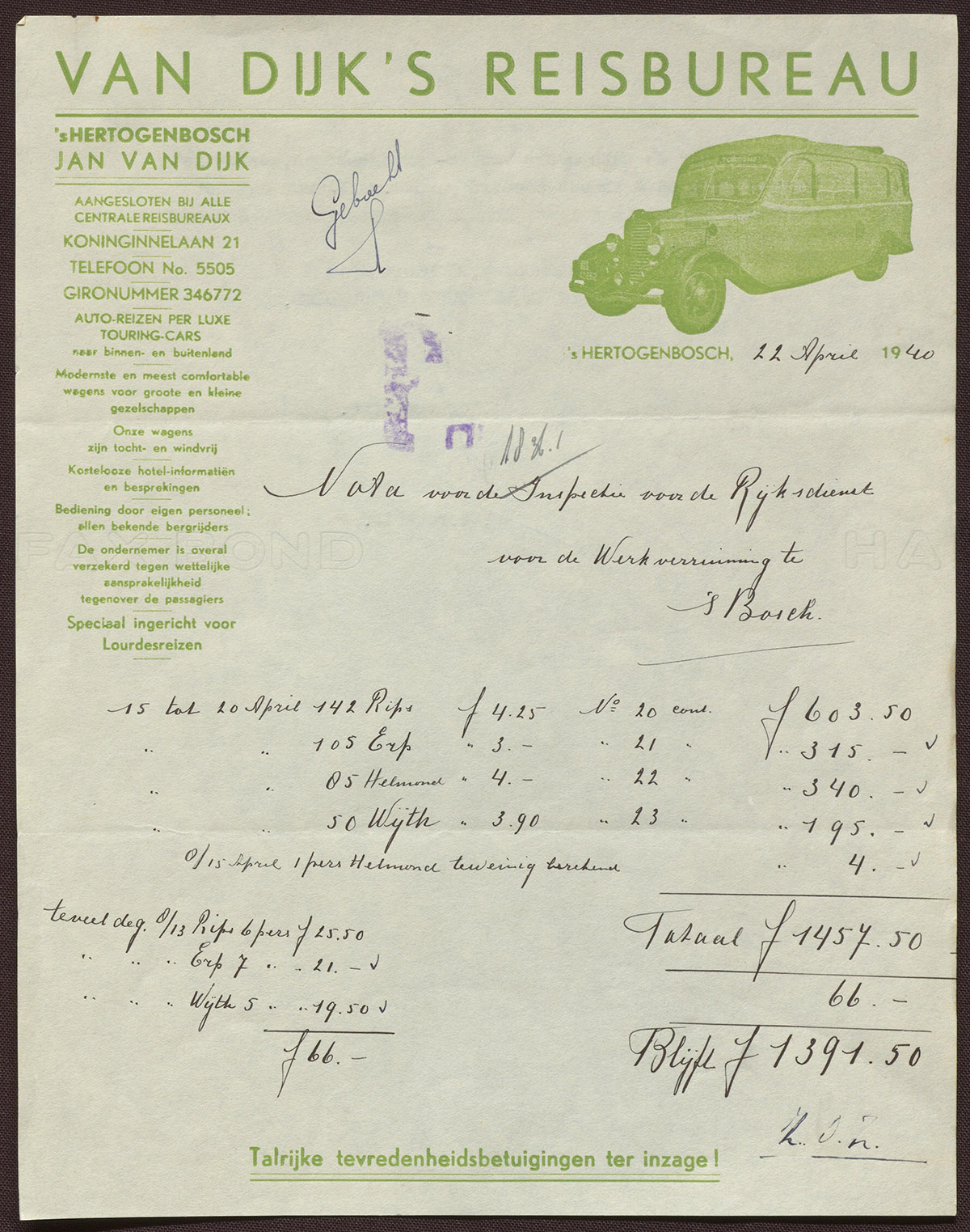 Jan van Dijk : Van Dijk's Reisbureau 's-Hertogenbosch