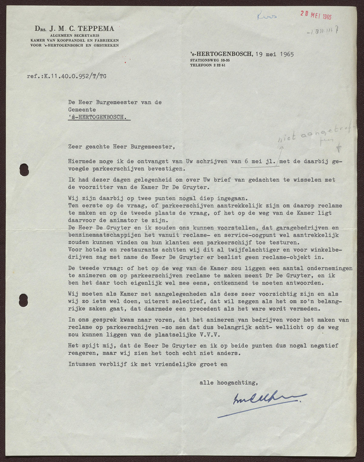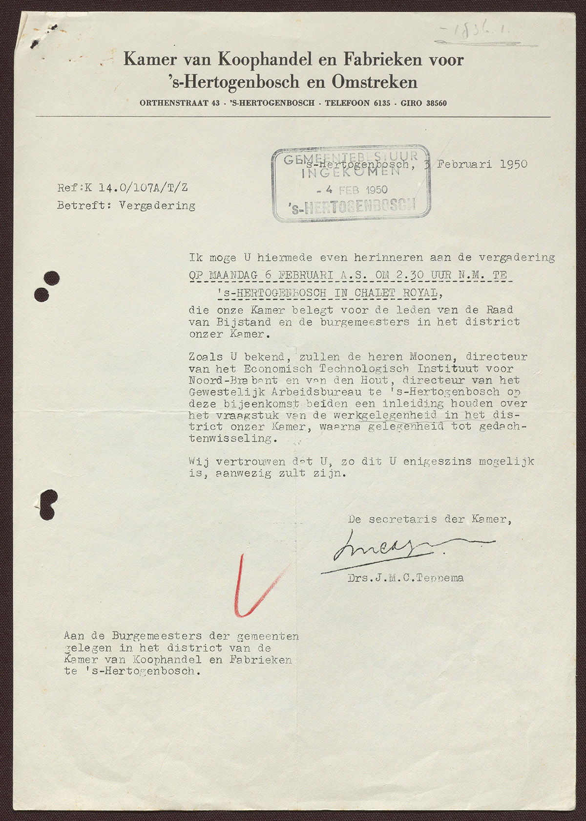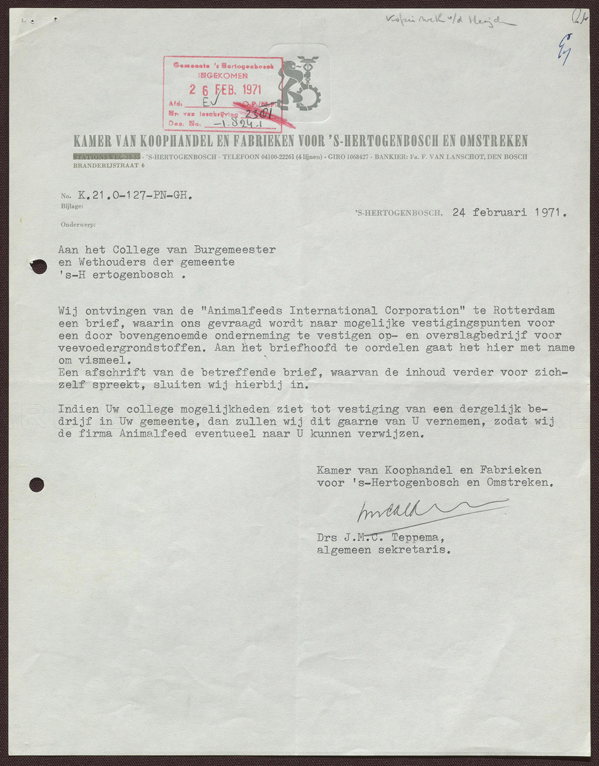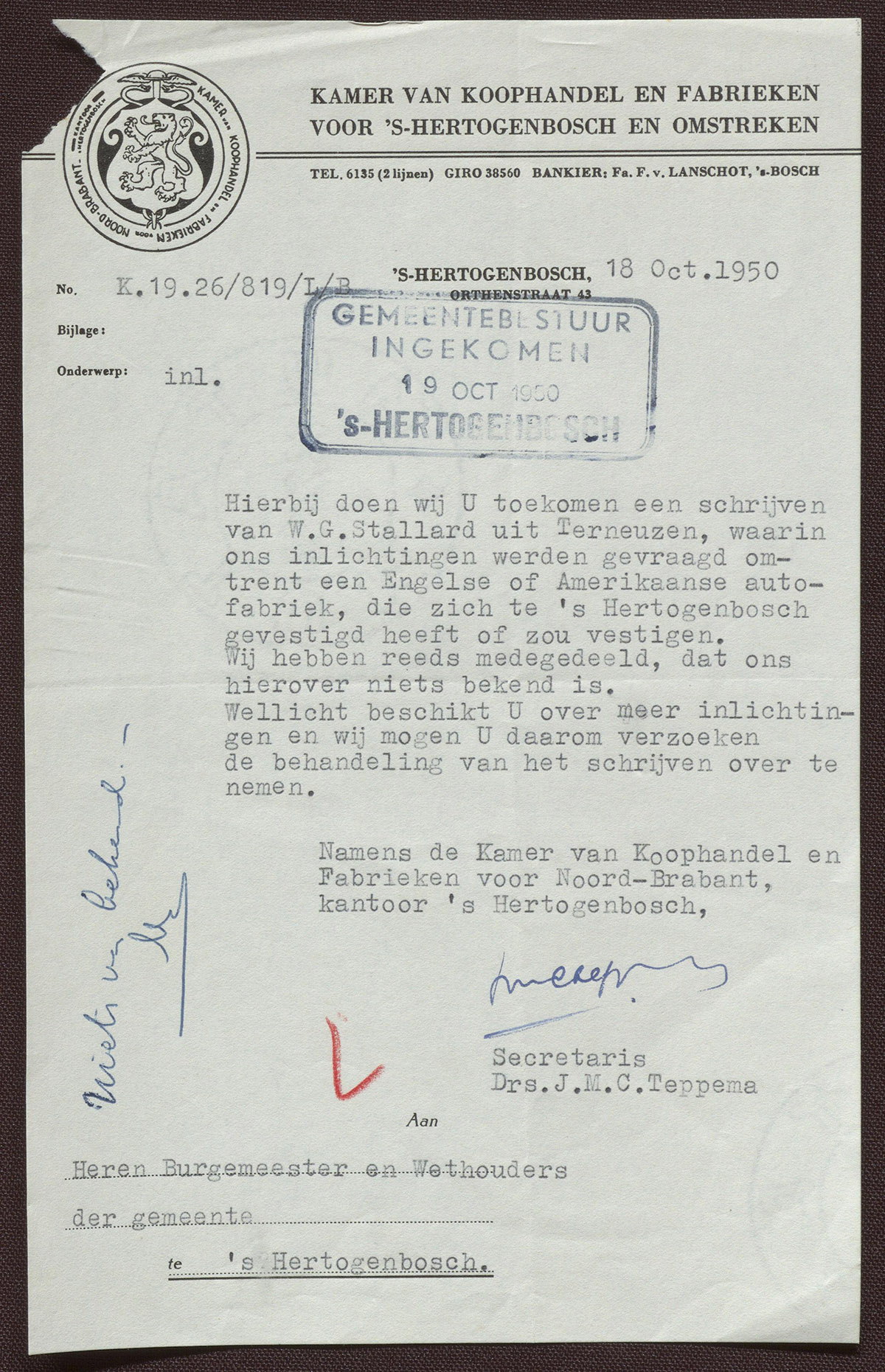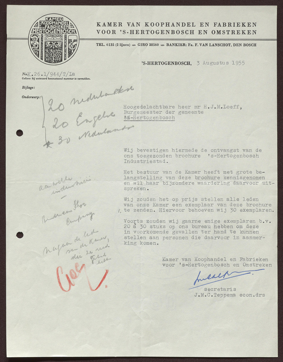 Drs. J.M.C. Teppema : Algemeen secretaris Kamer van Koophandel en Fabrieken