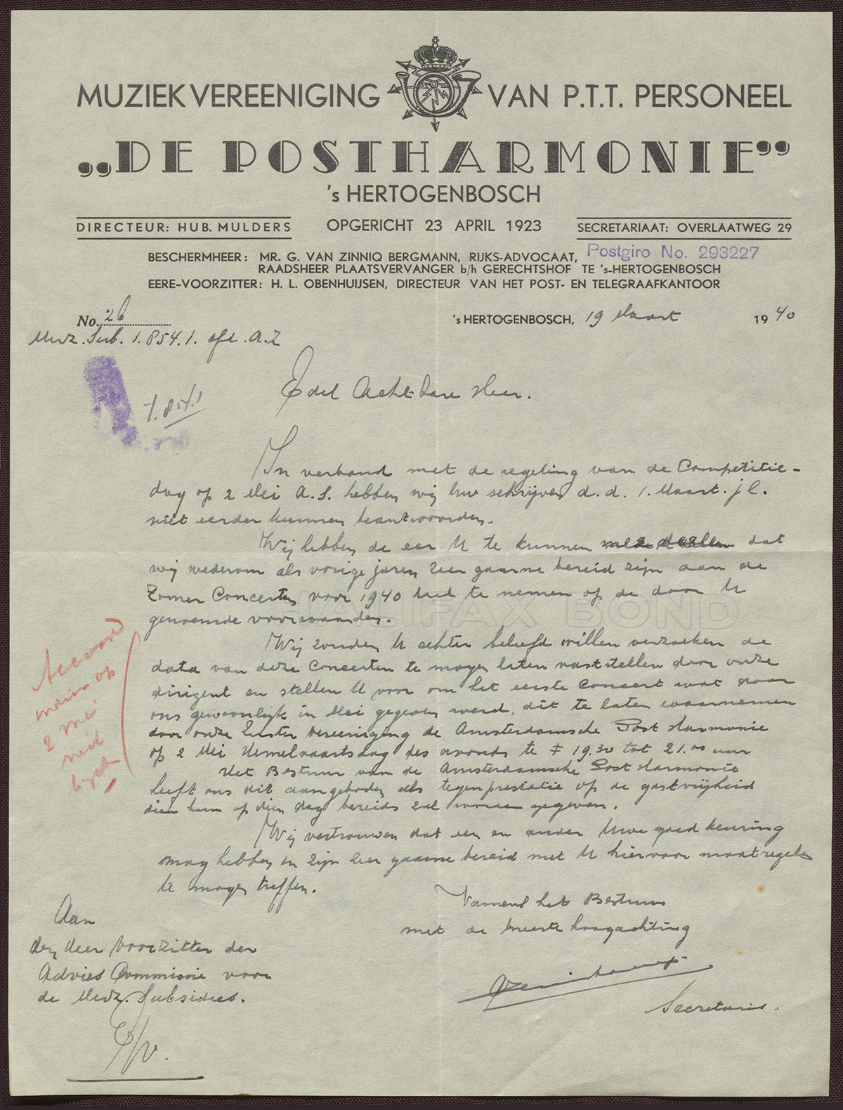 'De Postharmonie' : Muziekvereeniging van P.T.T. personeel