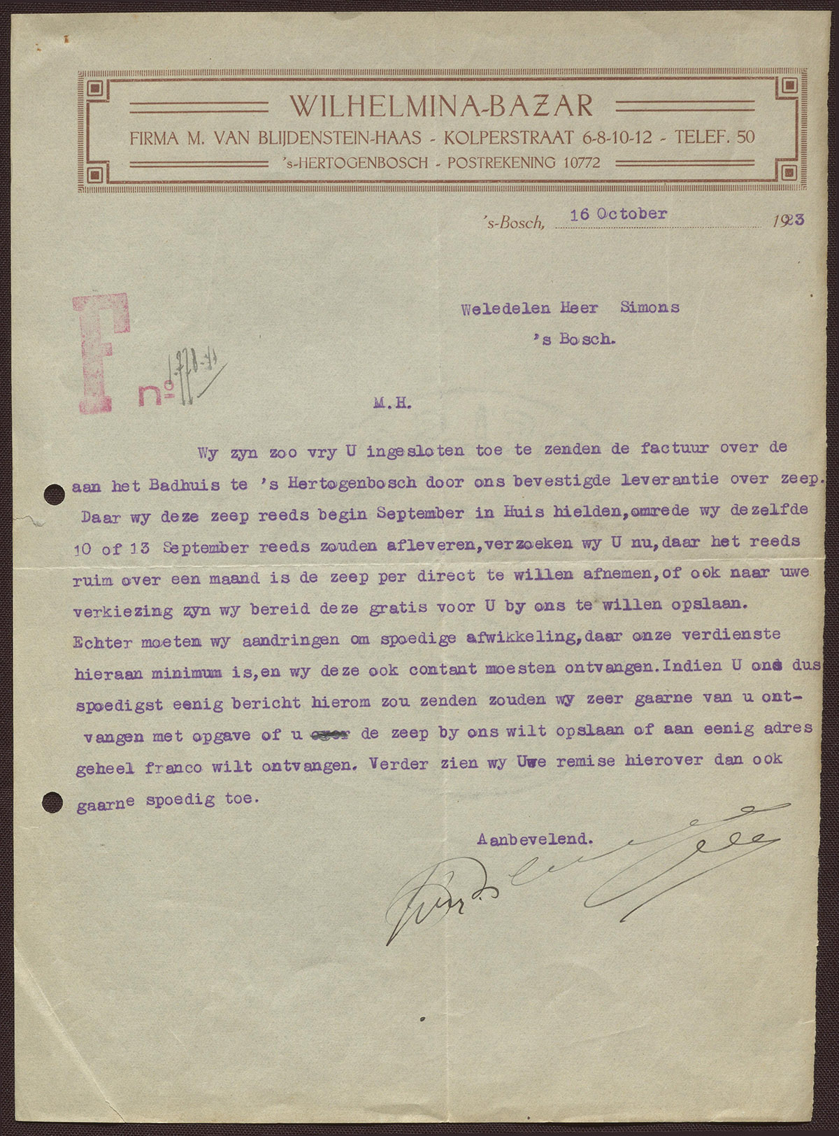 Firma M. van Blijdenstein-Haas : Wilhelmina-Bazar